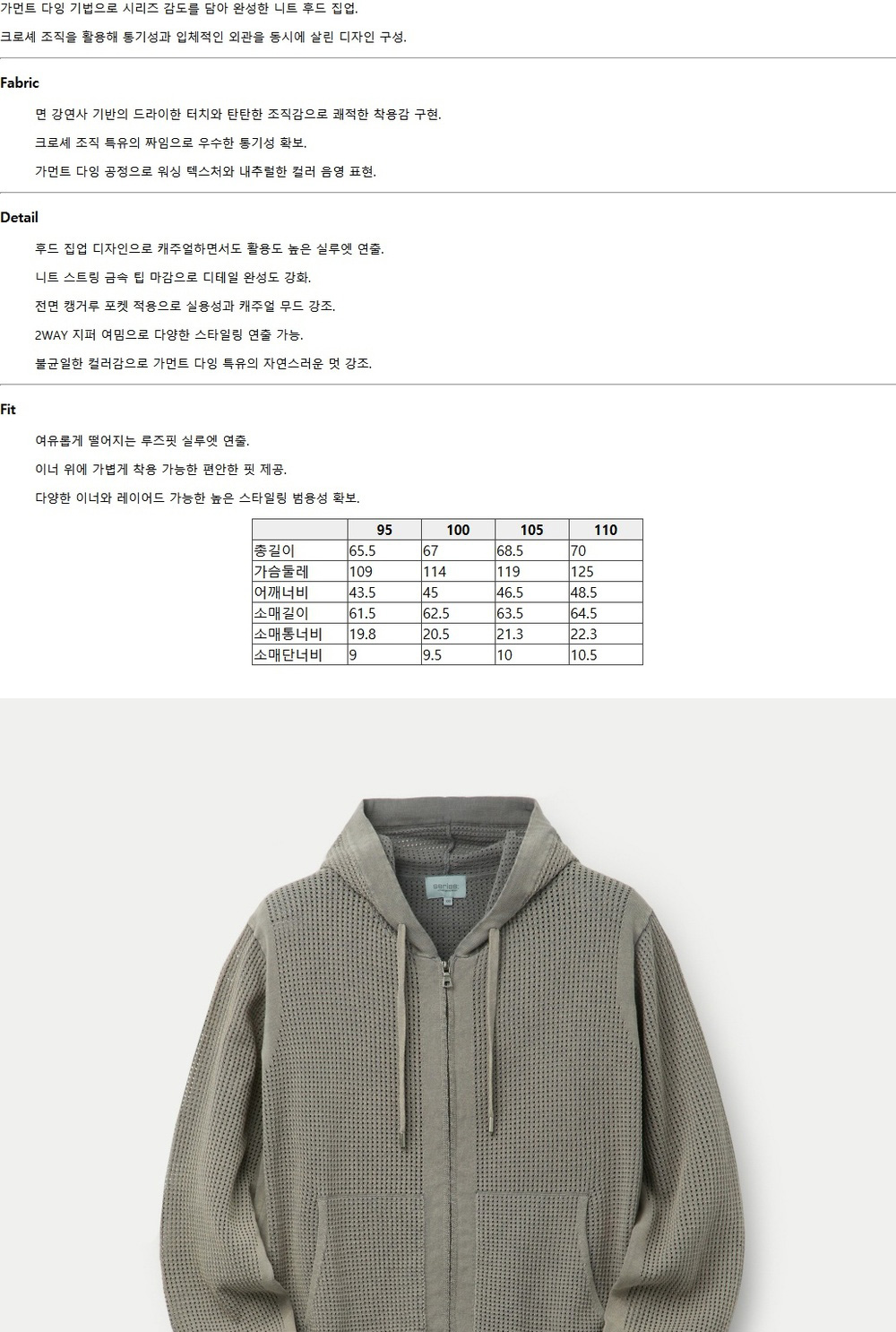 시리즈 다잉 크로쉐 후디 집업 가디건 라이트 그레이