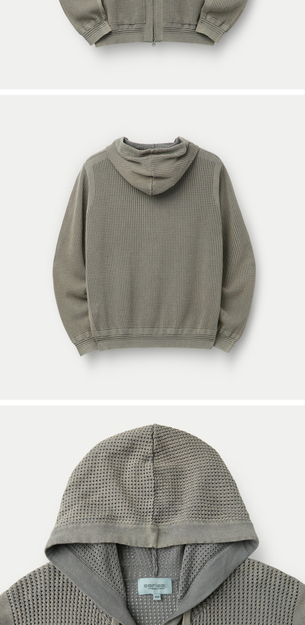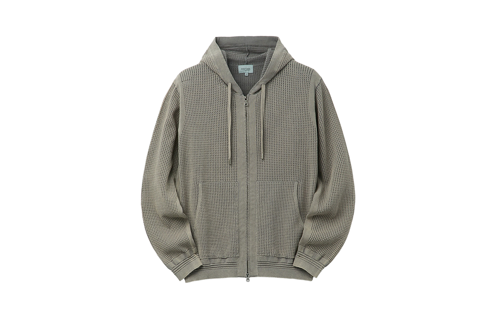 SERIES Dyed Crochet Hoodie Zip Cardigan Light Gray