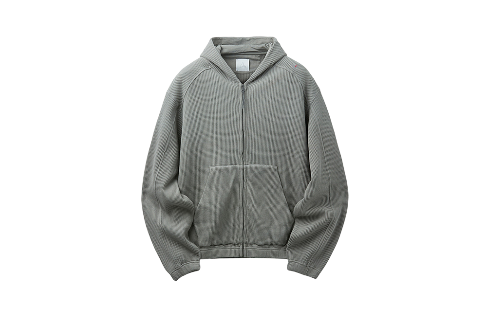 SERIES Roa Bee Sun Faded Organic Waffle Zip Hoodie Gray