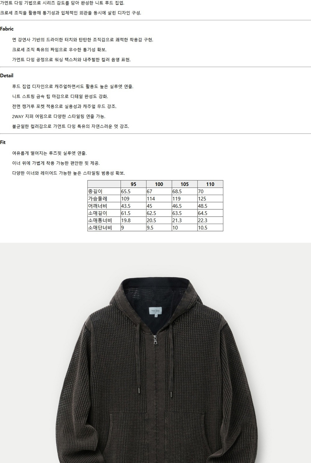 시리즈 가먼트 다잉 크로쉐 후디 가디건 다크차콜