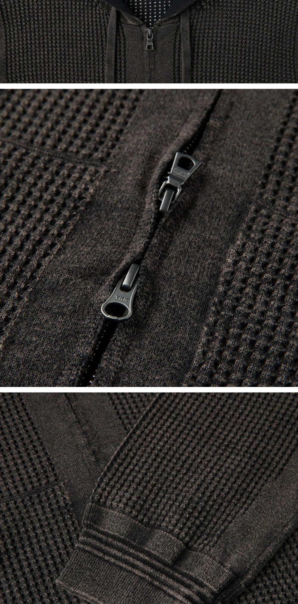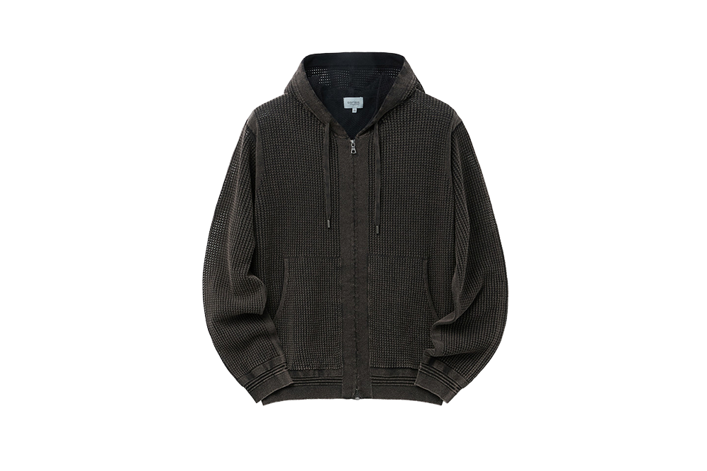 SERIES Garment Dyed Crochet Hoodie Cardigan Charcoal Dark