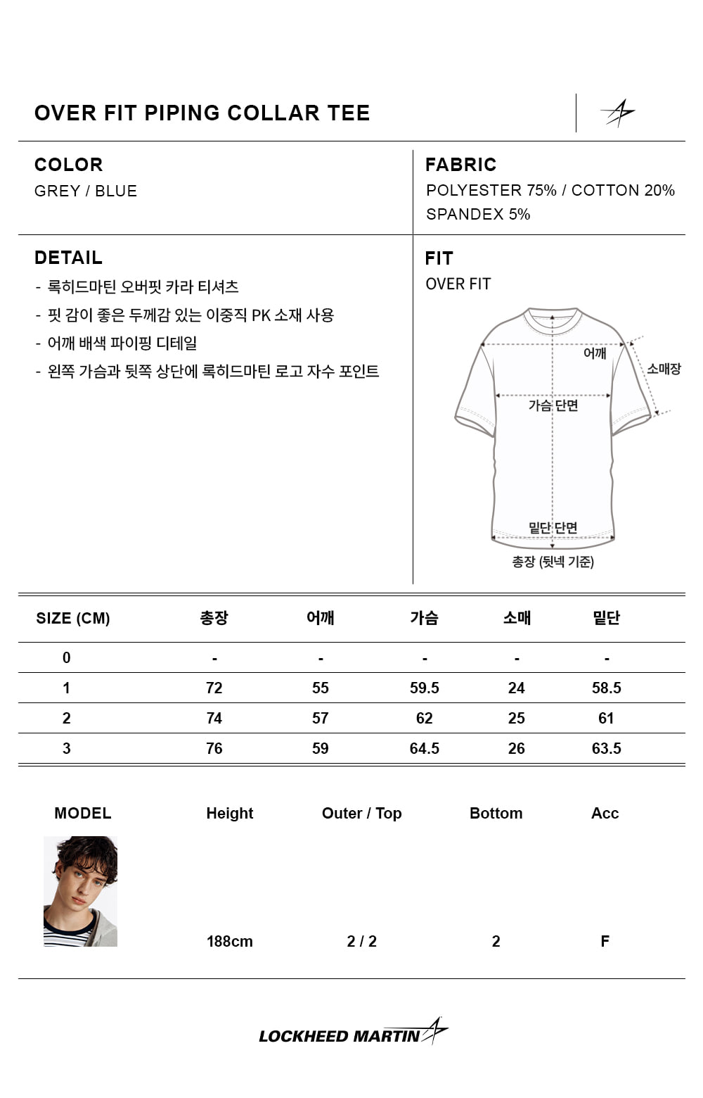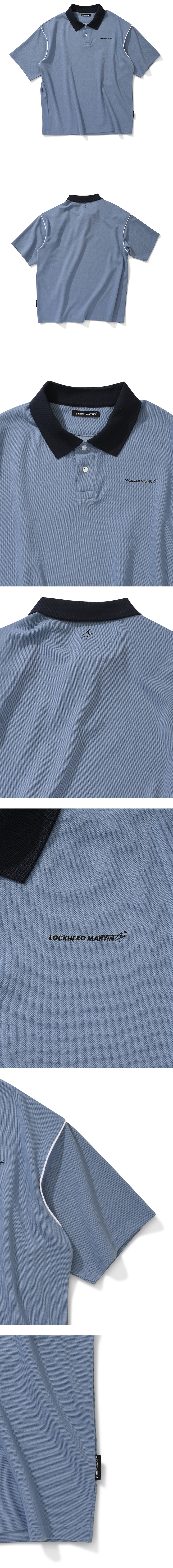 록히드마틴 오버핏 파이핑 카라 티셔츠 블루