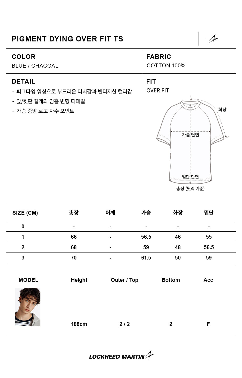 록히드마틴 피그먼트 다잉 오버핏 티셔츠 블루