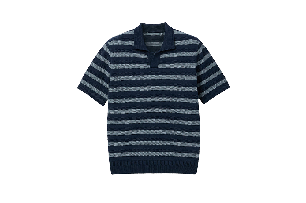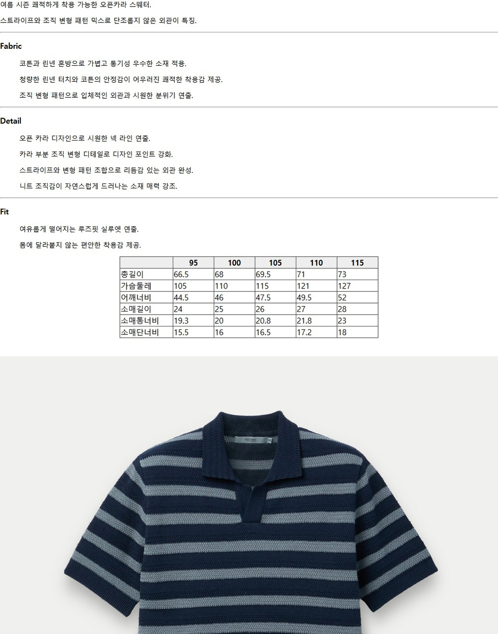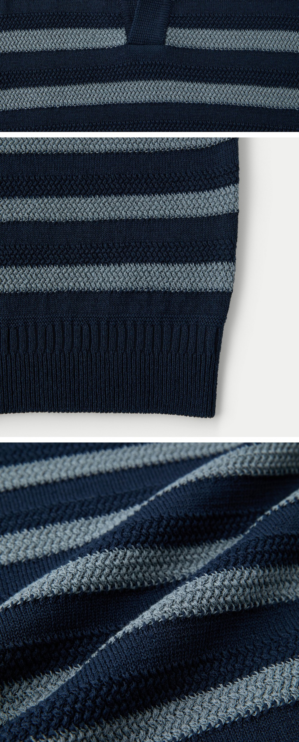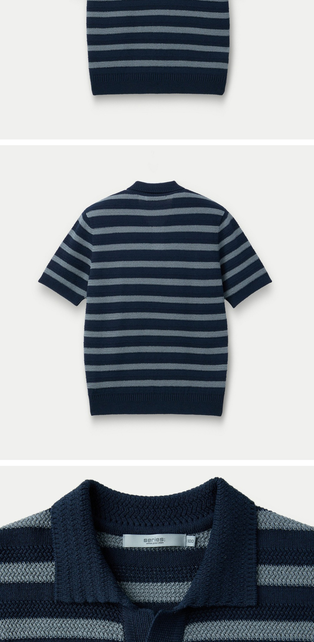 시리즈 패턴 하프 슬리브 오픈카라 스웨터 네이비