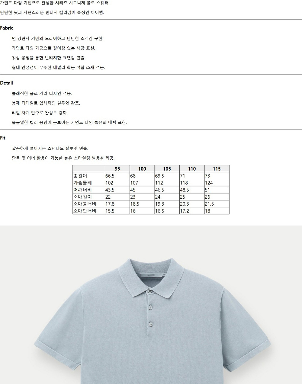 시리즈 가먼트 다잉 하프 슬리브 폴로 블루