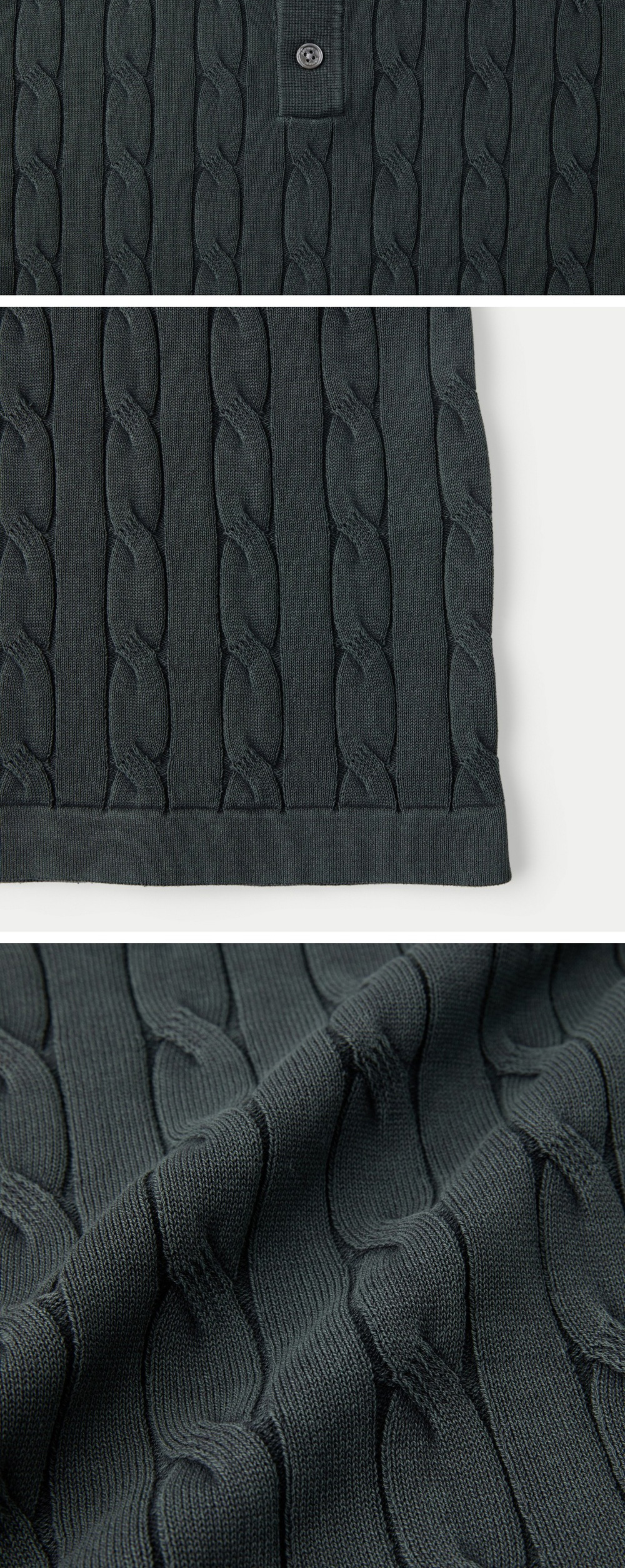 시리즈 가먼트 다잉 케이블 폴로 스웨터 다크 그린
