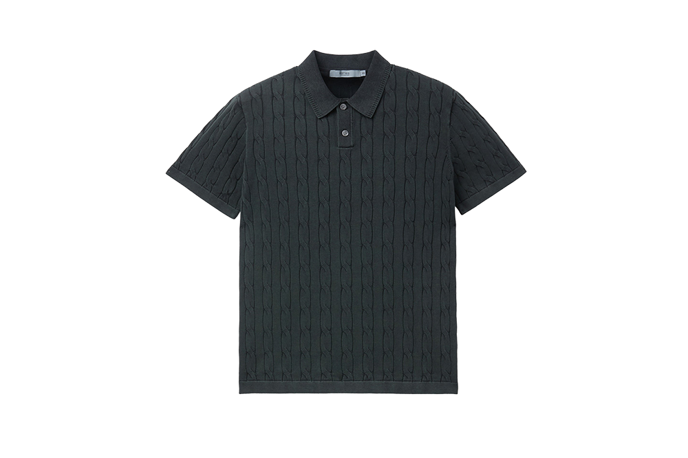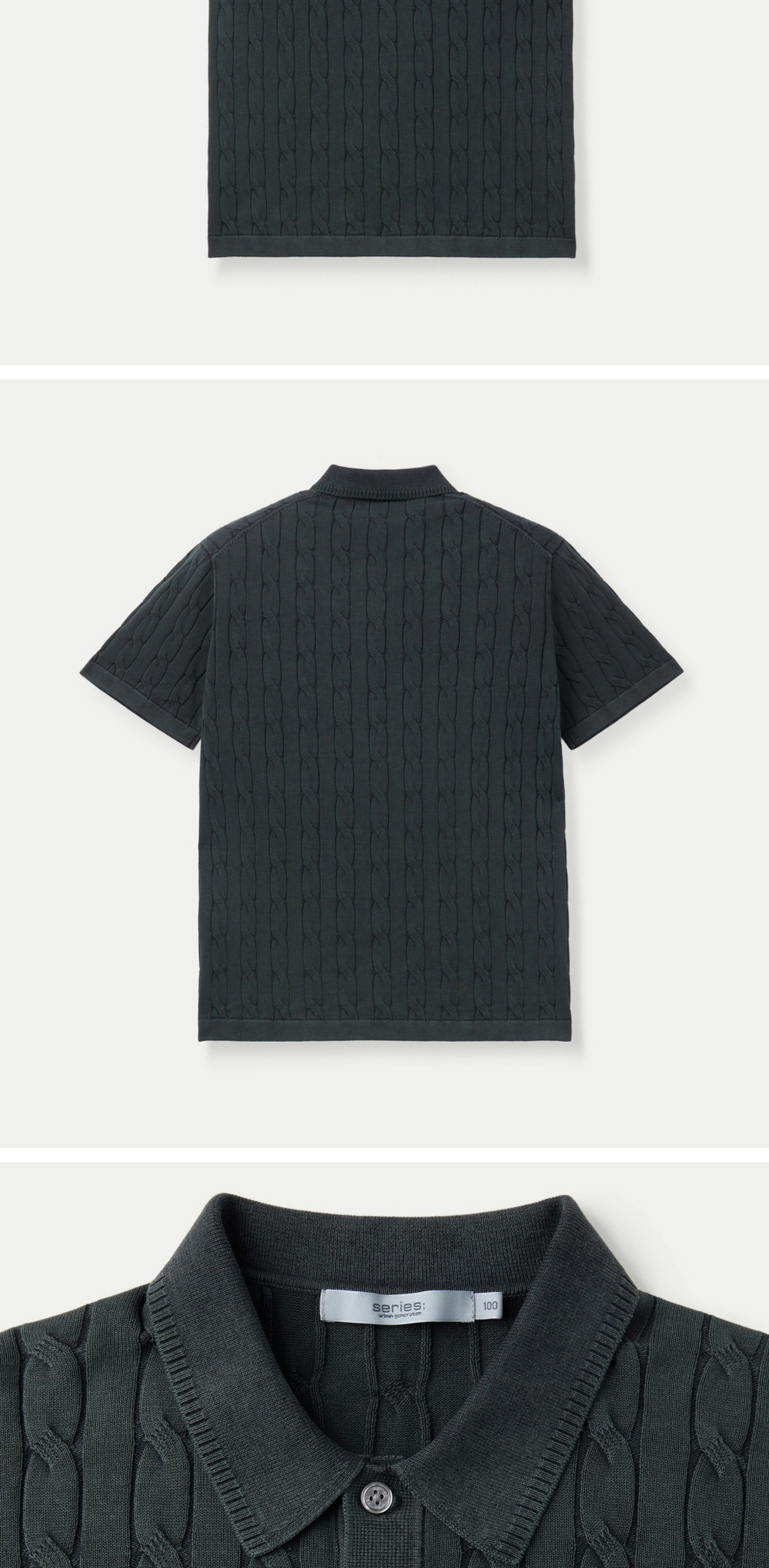 SERIES Garment Dyed Cable Polo Sweater Dark Gray