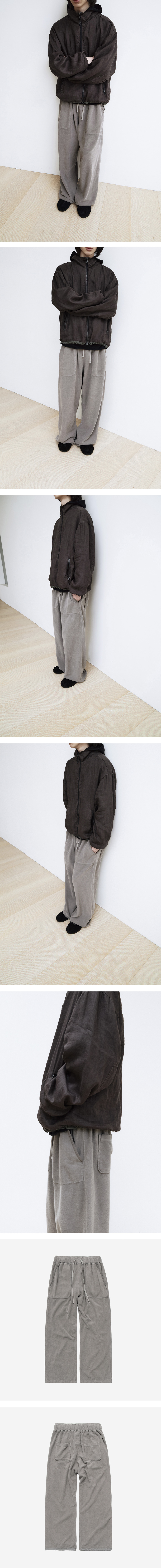 cover stitch sweat pants -네프 텍스쳐 원단이 적용된 스웻 팬츠 -몸판과 은은하게 대비되는 컬러 커버스티치 디테일 -전·후면 2포켓 구성 -밑단 샤무드 및 스트링 디테일 적용 -허리 스트링을 통한 사이즈 조절 가능 -러프한 겉 텍스쳐와 대비되는 부드러운 내부 터치감 *모델: 178cm / 마른 체형, 3사이즈 착용