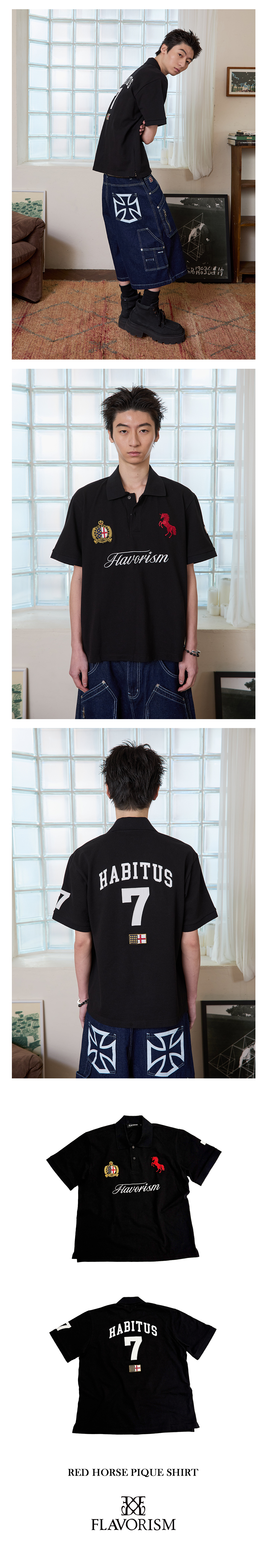 플레이버리즘 레드 홀스 피케 셔츠 블랙