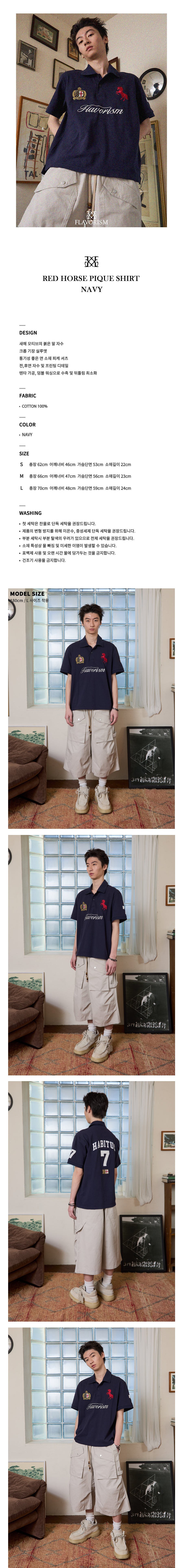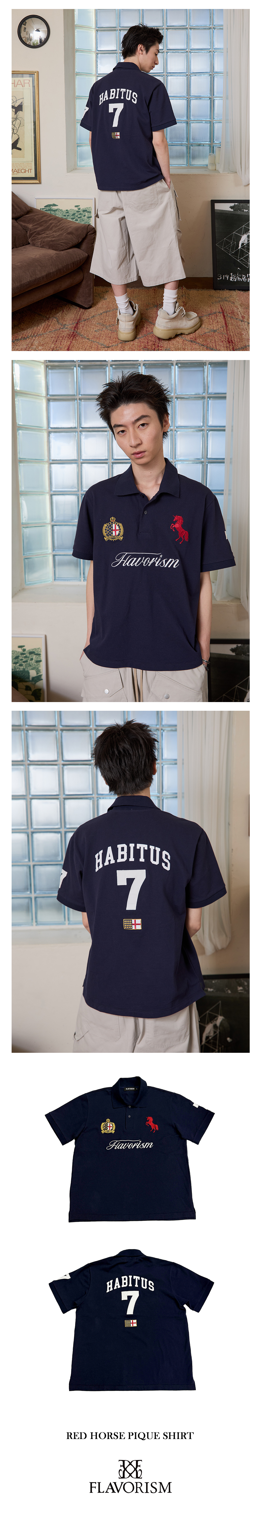 플레이버리즘 레드 홀스 피케 셔츠 네이비
