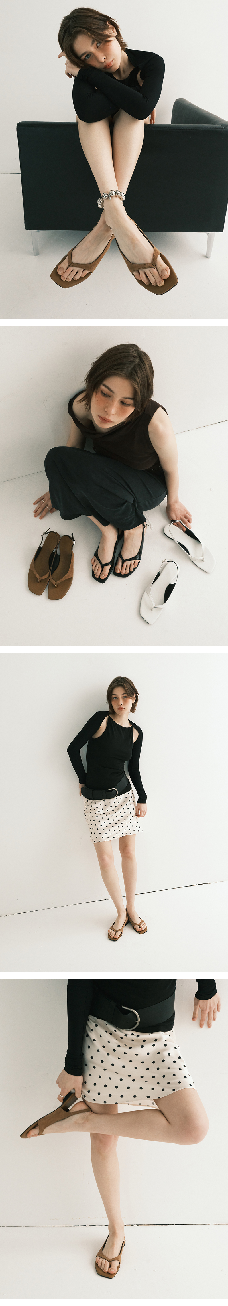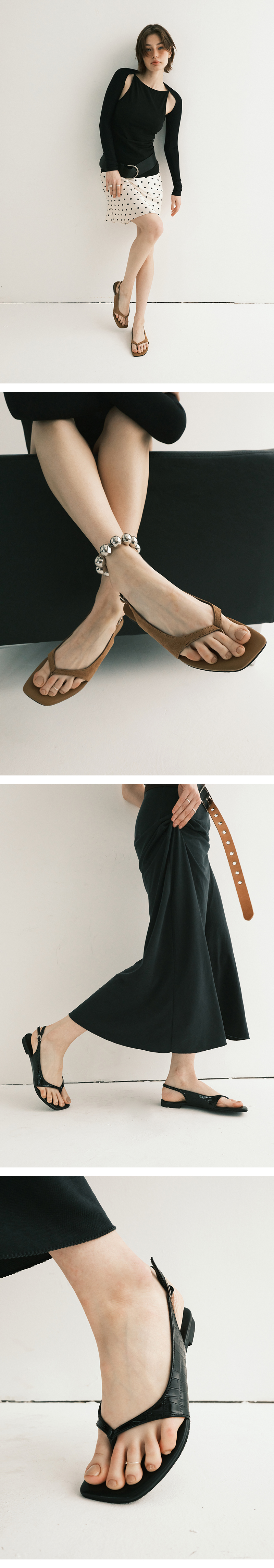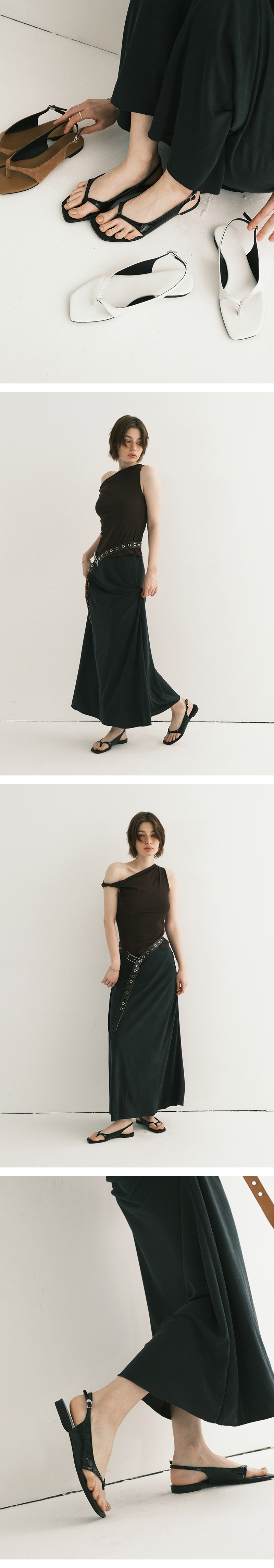 간결한 실루엣으로 군더더기 없는 슬링백 플랫샌들. 슬링백 벨트로 핏 조절이 가능합니다.