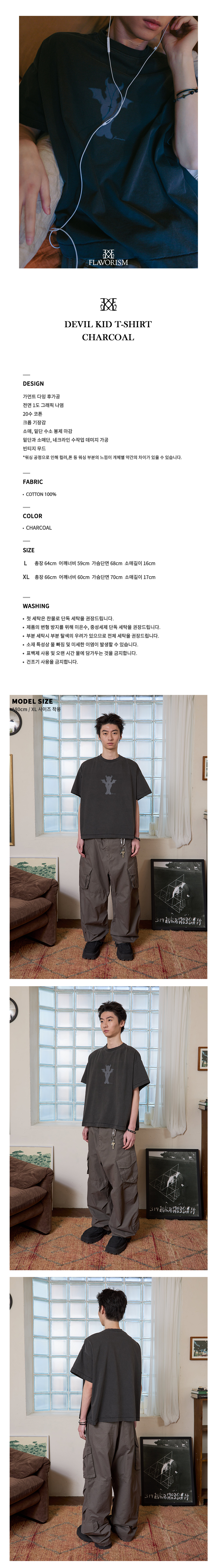 플레이버리즘 데빌 키드 티셔츠 차콜