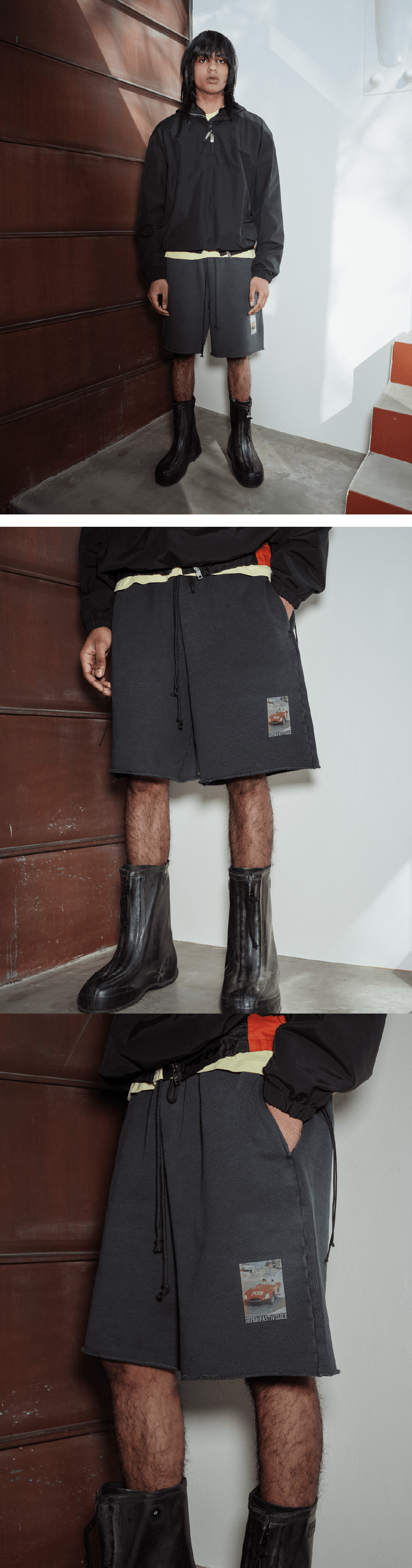 Phase 3 : Miglia di Follia 세상에서 가장 아름다운 광기 어린 레이스 밀레 밀리아의 로드레이스 그래픽이 더해진 가먼트 다잉 루즈 스웻 쇼츠입니다. + 오랜 세월 입은 듯 부드럽게 길들여진 프렌치 테리 소재 + 롤링 컷 밑단 디테일 + 빈티지한 질감으로 표현된 그래픽 프린트 + 가먼트 다잉 + Cotton 100% + Made in Korea + 모델(178cm) 착용 사이즈 L
