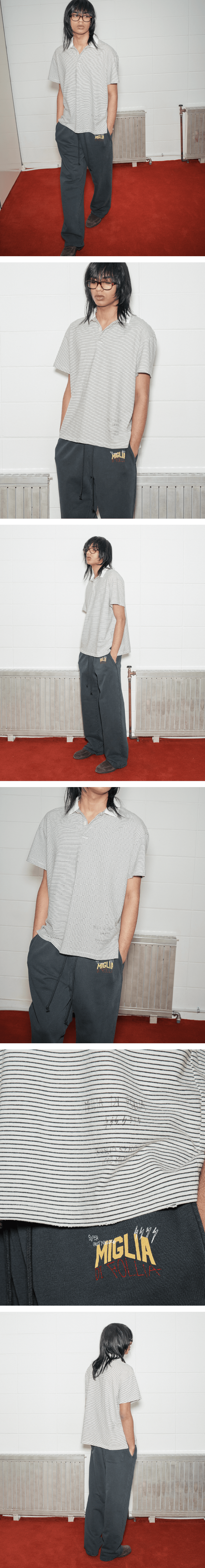 Phase 3 : Miglia di Follia 세상에서 가장 아름다운 광기 어린 레이스 이미 오랜 시간을 지나온 듯한 부드러운 터치와 디테일로 내추럴함을 강조한 클래식 폴로셔츠입니다. + 클래식 미니 스트라이프 싱글 저지 + 워싱 공정을 거친 나른한 핏과 텍스처 + 와이드한 품과 크롭 기장 실루엣 + 디스트레스, 핀홀 등 에이징 디테일 + 핸드 드로잉 프린트 디테일 + Cotton 100% + Made in Korea + 모델(178cm) 착용 사이즈 L