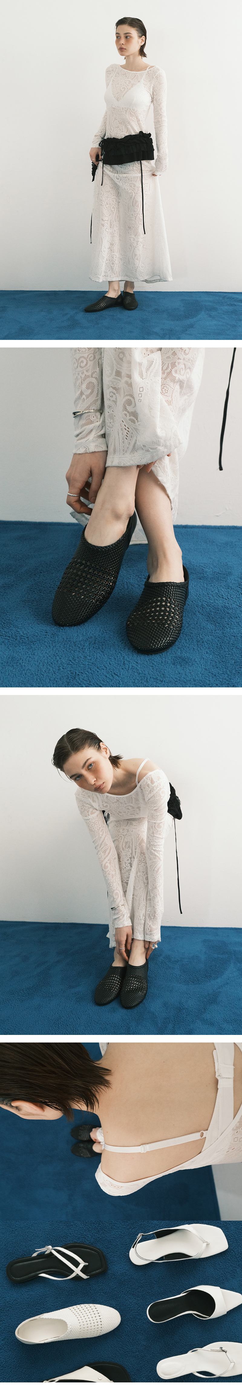 여름을 담은 위빙소재의 로퍼. 뒷축을 접어 신을 수 있는 2way 스타일입니다.