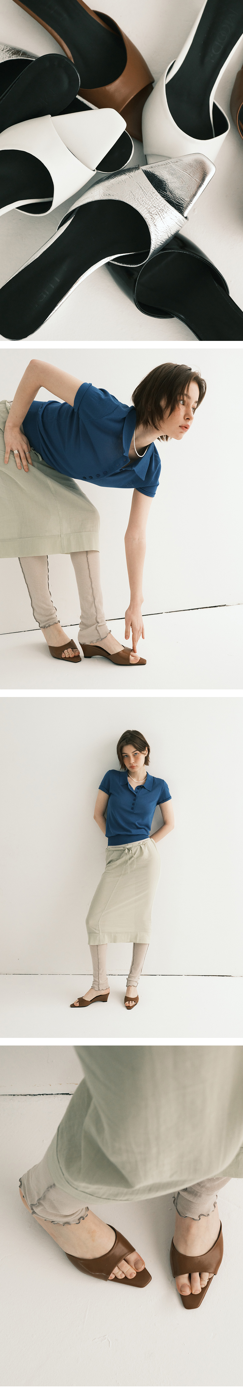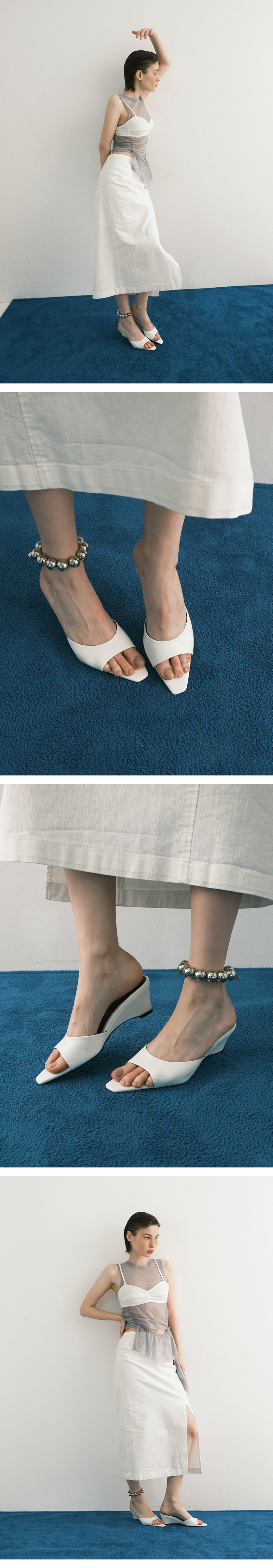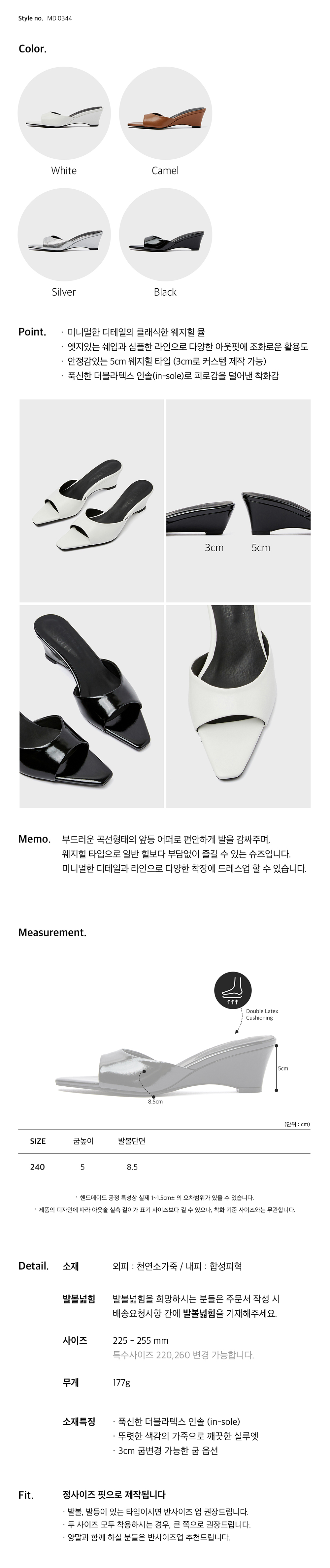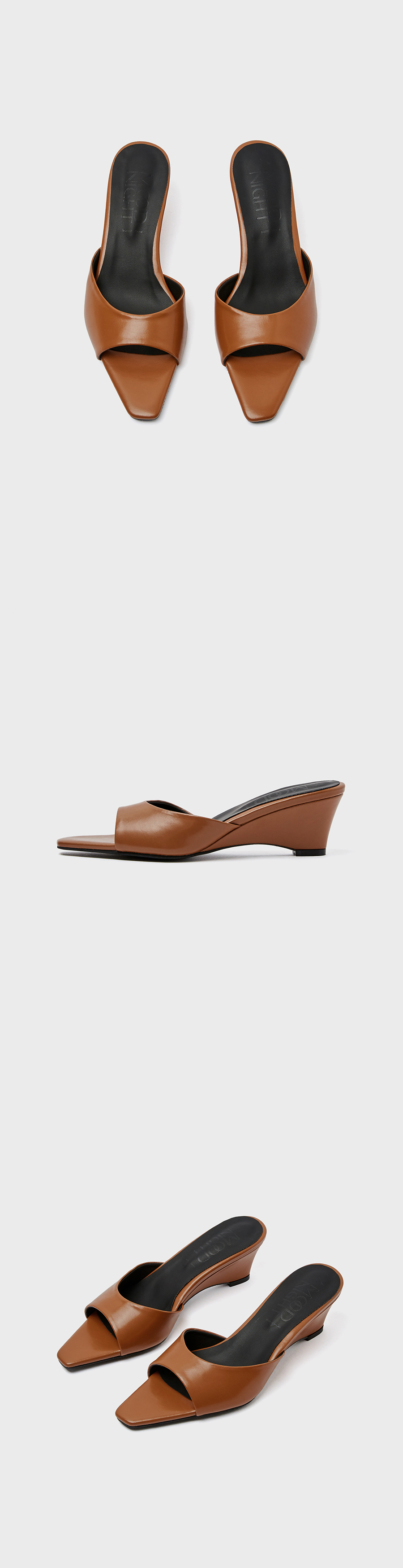 클린한 실루엣의 곡선 웨지힐이 매력적인 뮬 샌들.