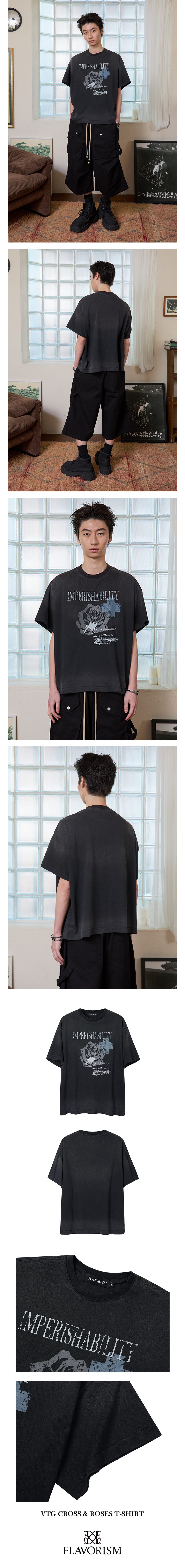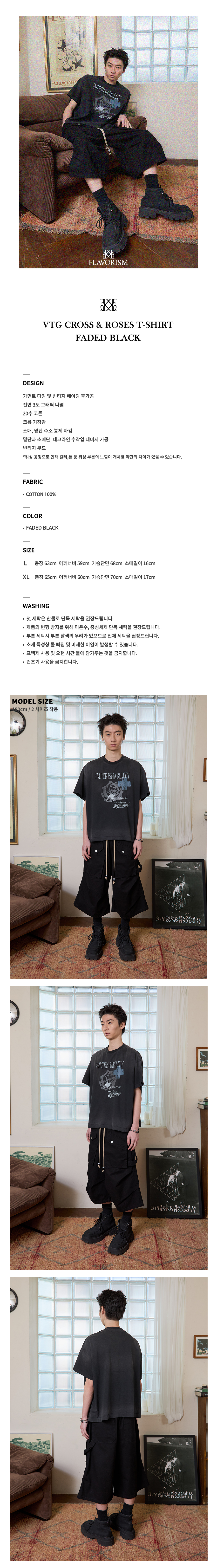 플레이버리즘 빈티지 크로스 앤 로지스 티셔츠 페이디드 블랙