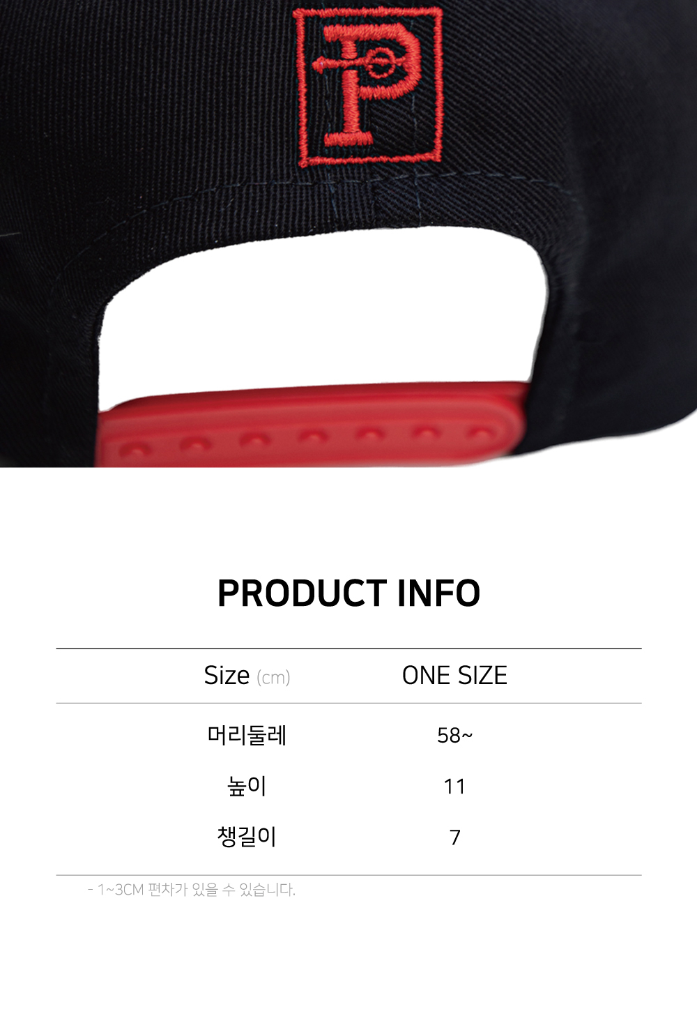 | 머리둘레 | 높이 | 챙길이 |