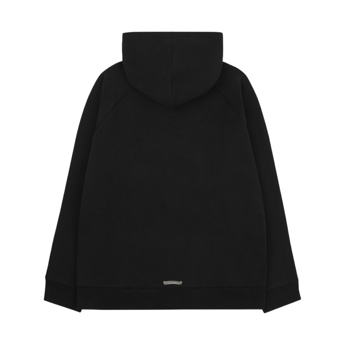 Chrome Hearts Cross Leather Patch Fleece Zip-Up Hoodie Black