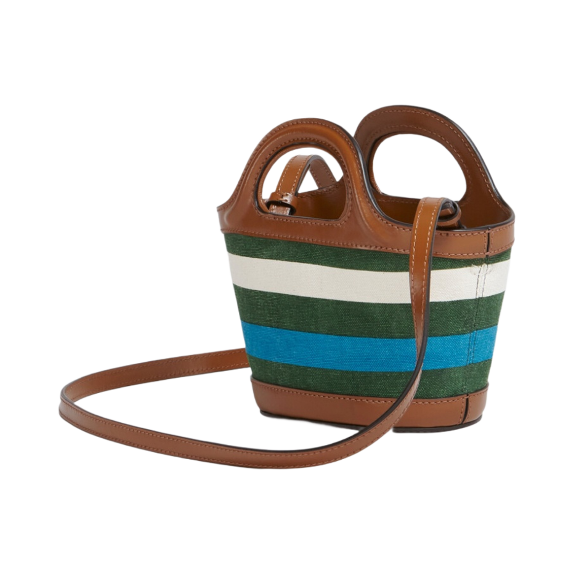 Marni Leather and Striped Canvas Tropicalia Micro Basket Tote Bag Garden Green Vivid Blue