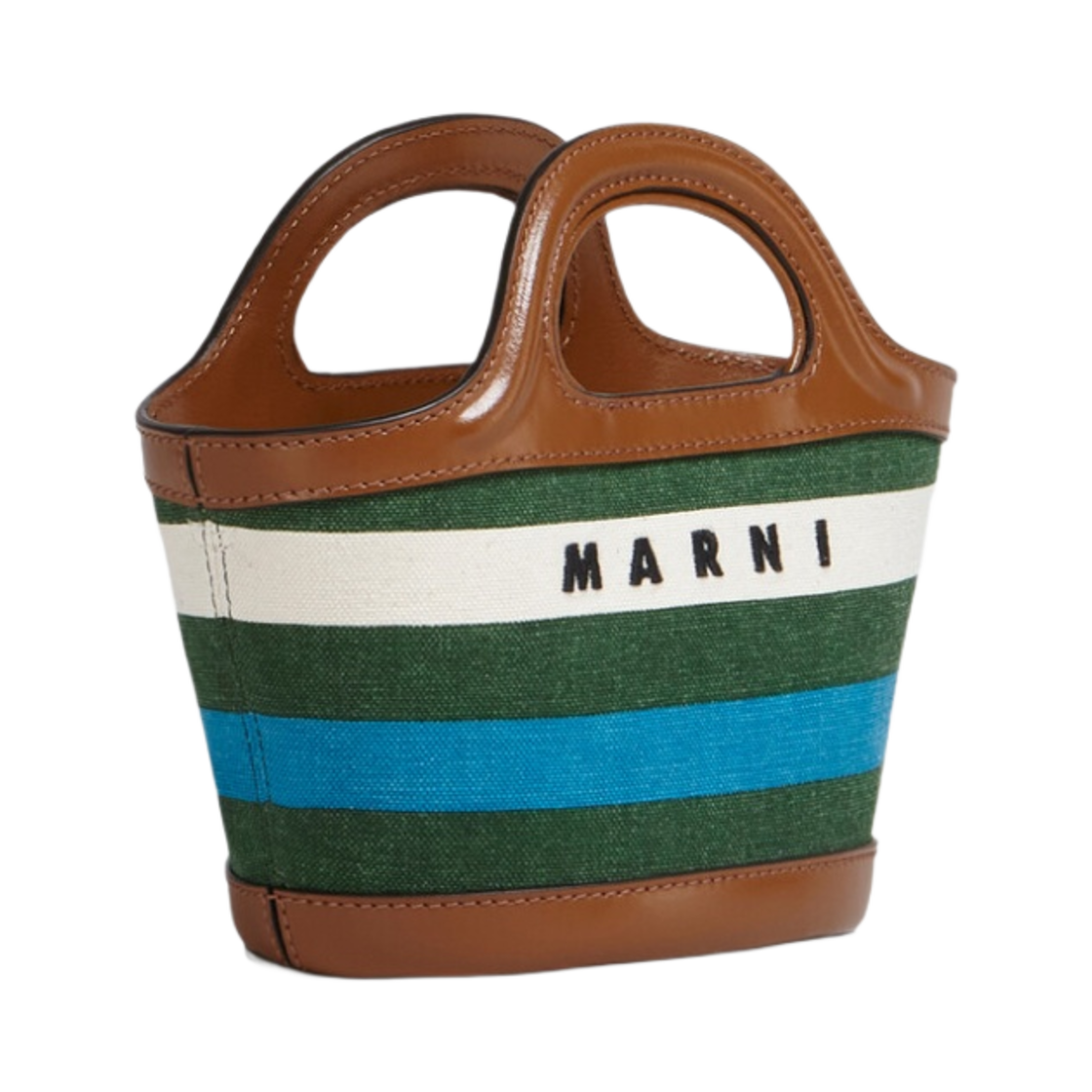 마르니 레더 앤 스트라이프 캔버스 트로피칼리아 마이크로 베스킷 토트백 가든 그린 비비드 블루