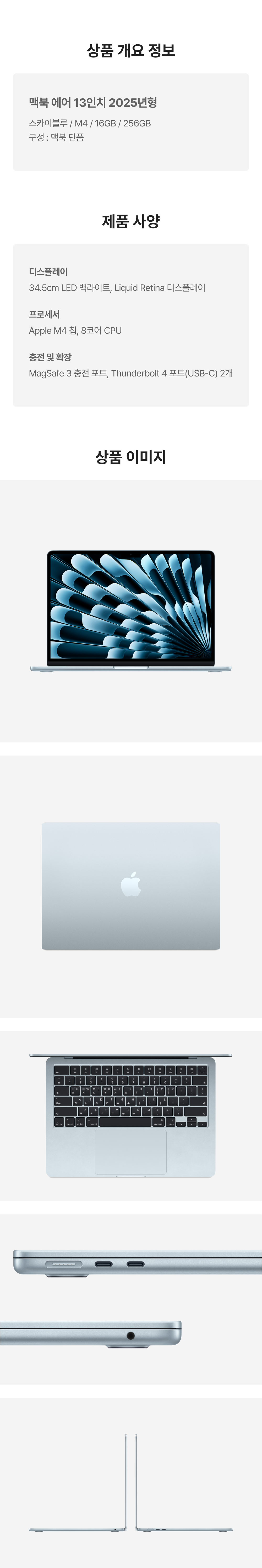 [S등급] 리퍼비시 2025 맥북 에어 13 M4 256기가 SSD 16기가 램 스카이블루