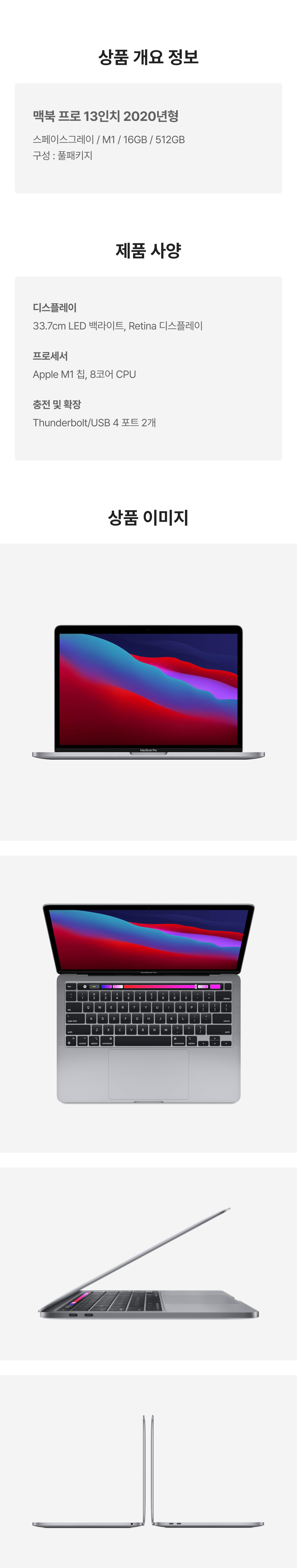 [B등급] 리퍼비시 2020 맥북 프로 13 M1 512기가 SSD 16기가 램 스페이스그레이