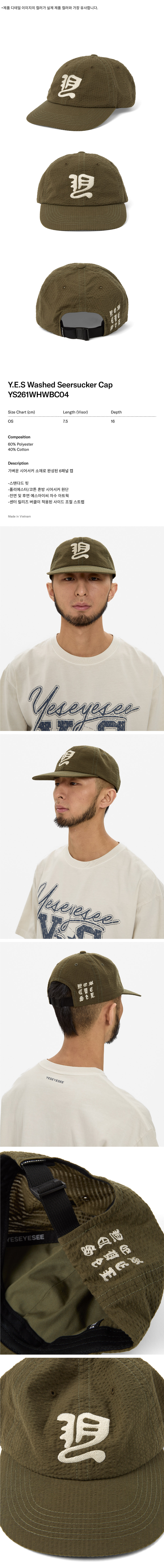 [더블적립] YESEYESEE Y.E.S Washed Seersucker Cap Olive