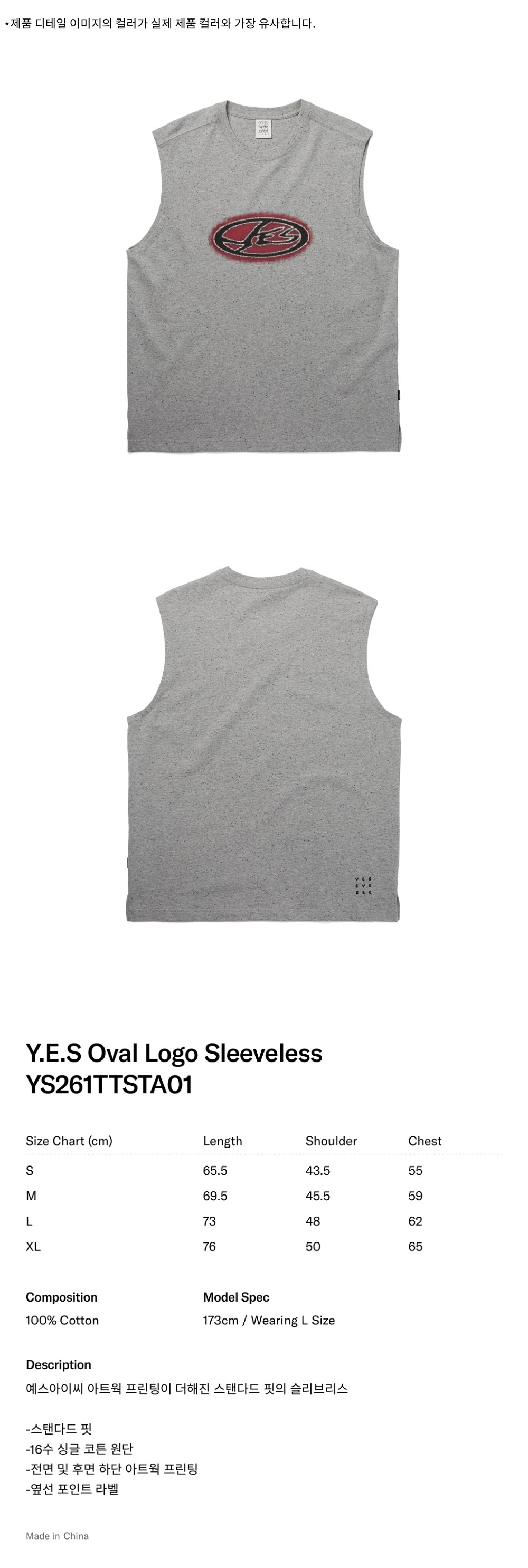 [더블적립] YESEYESEE Y.E.S Oval Logo Sleeveless Grey