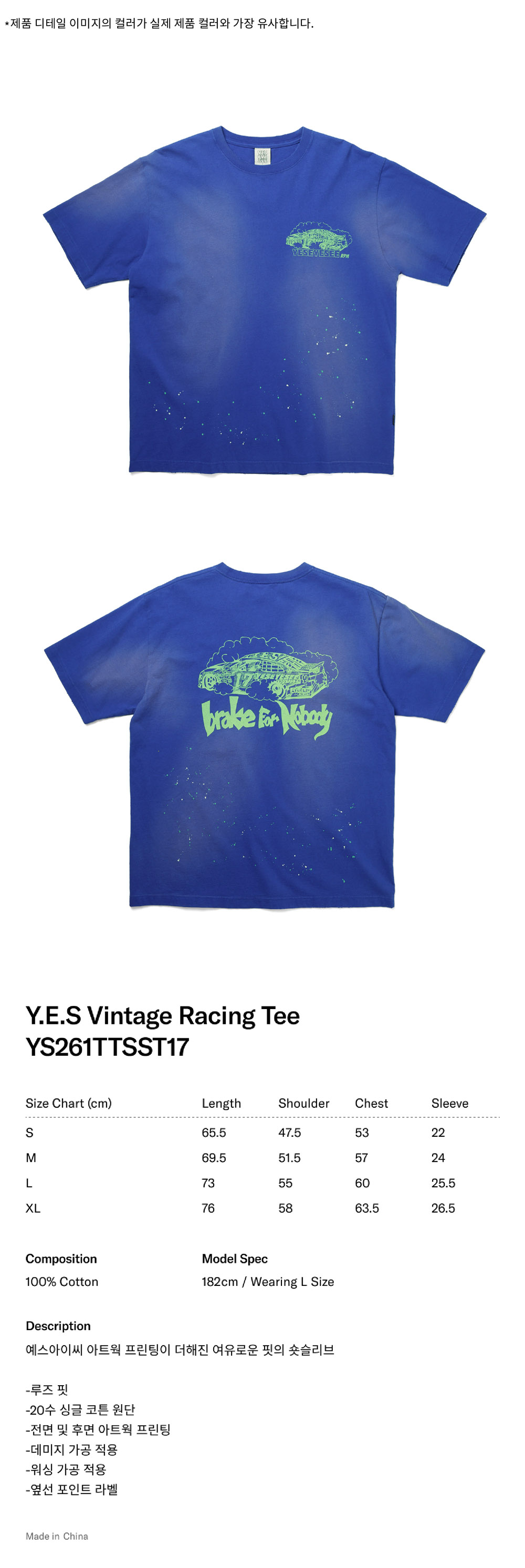 [더블적립] YESEYESEE Y.E.S Vintage Racing Tee Blue