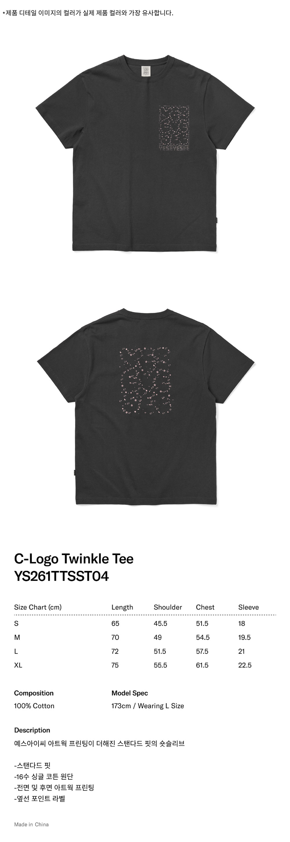 [더블적립] YESEYESEE C-logo Twinkle Tee Charcoal
