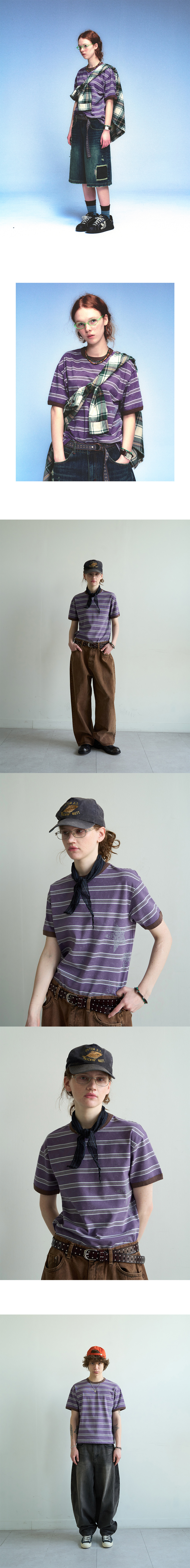 메인부스 러프 스타 스트라이프 티셔츠 퍼플