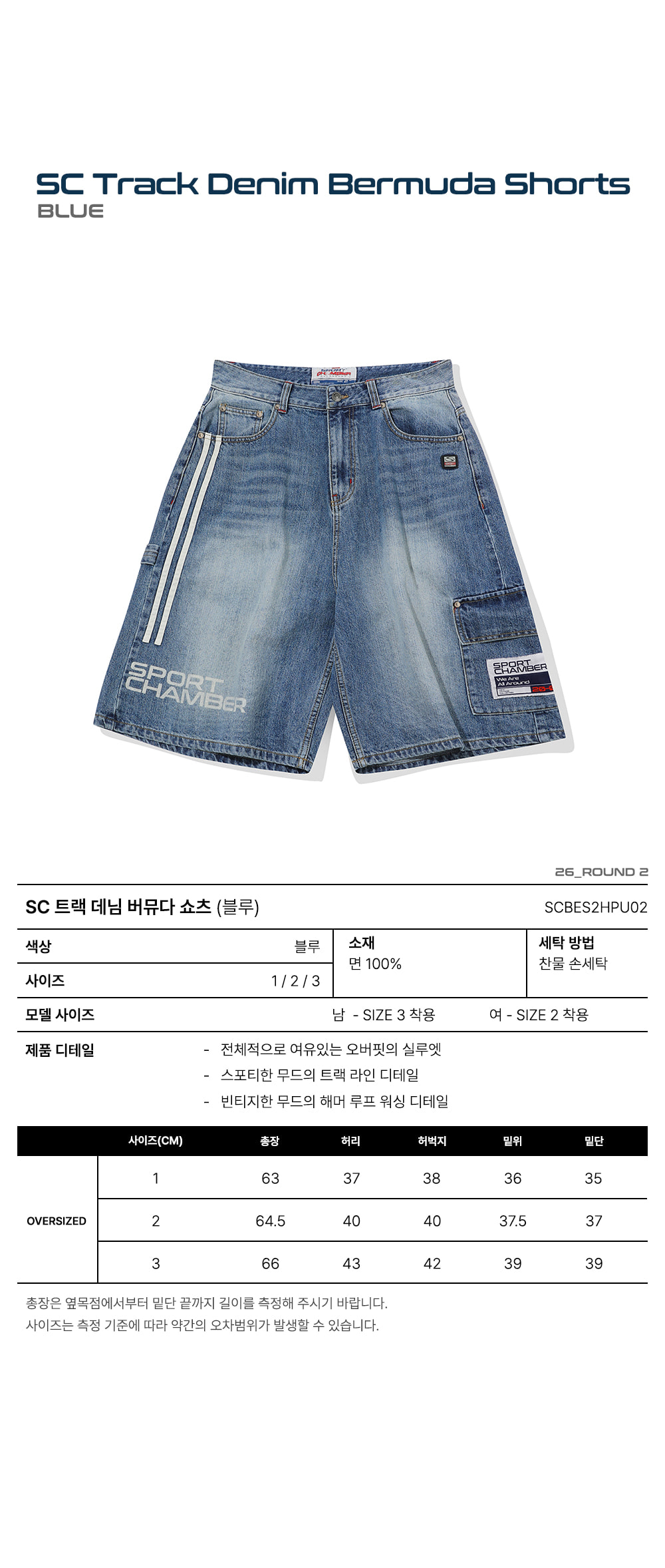 스포츠챔버 트랙 데님 버뮤다 쇼츠 블루