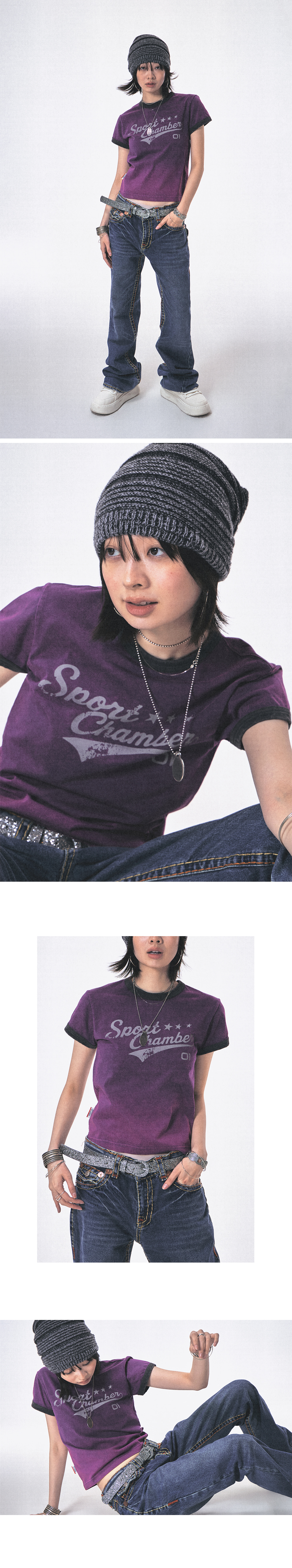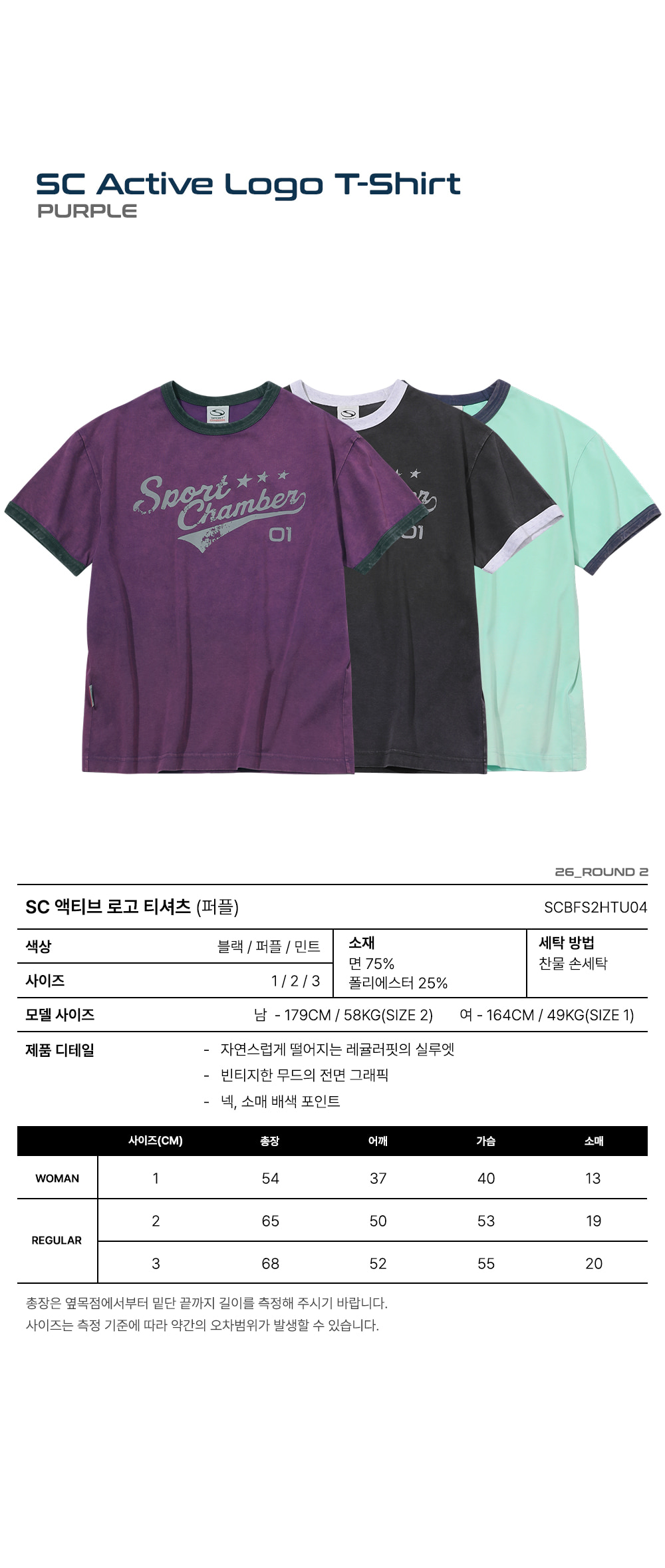 스포츠챔버 액티브 로고 티셔츠 퍼플