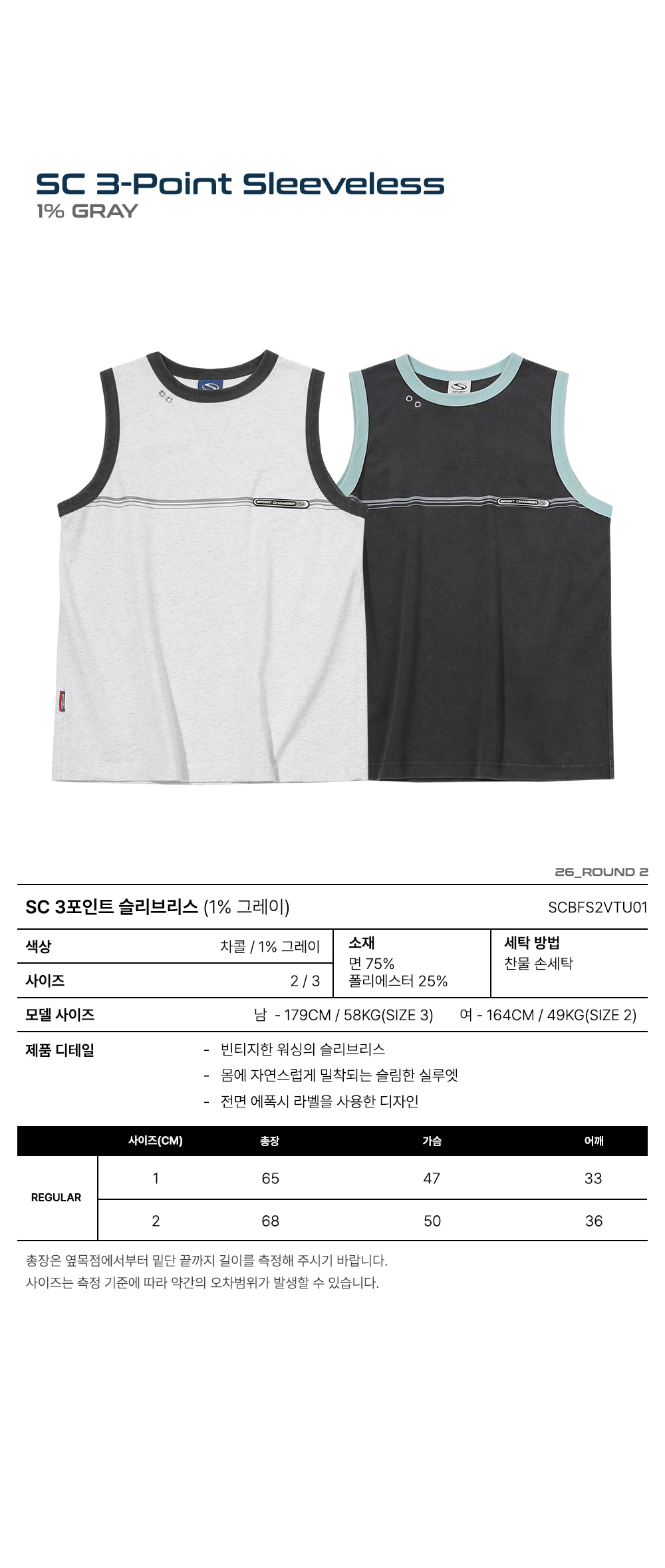 스포츠챔버 3포인트 슬리브리스 1% 그레이