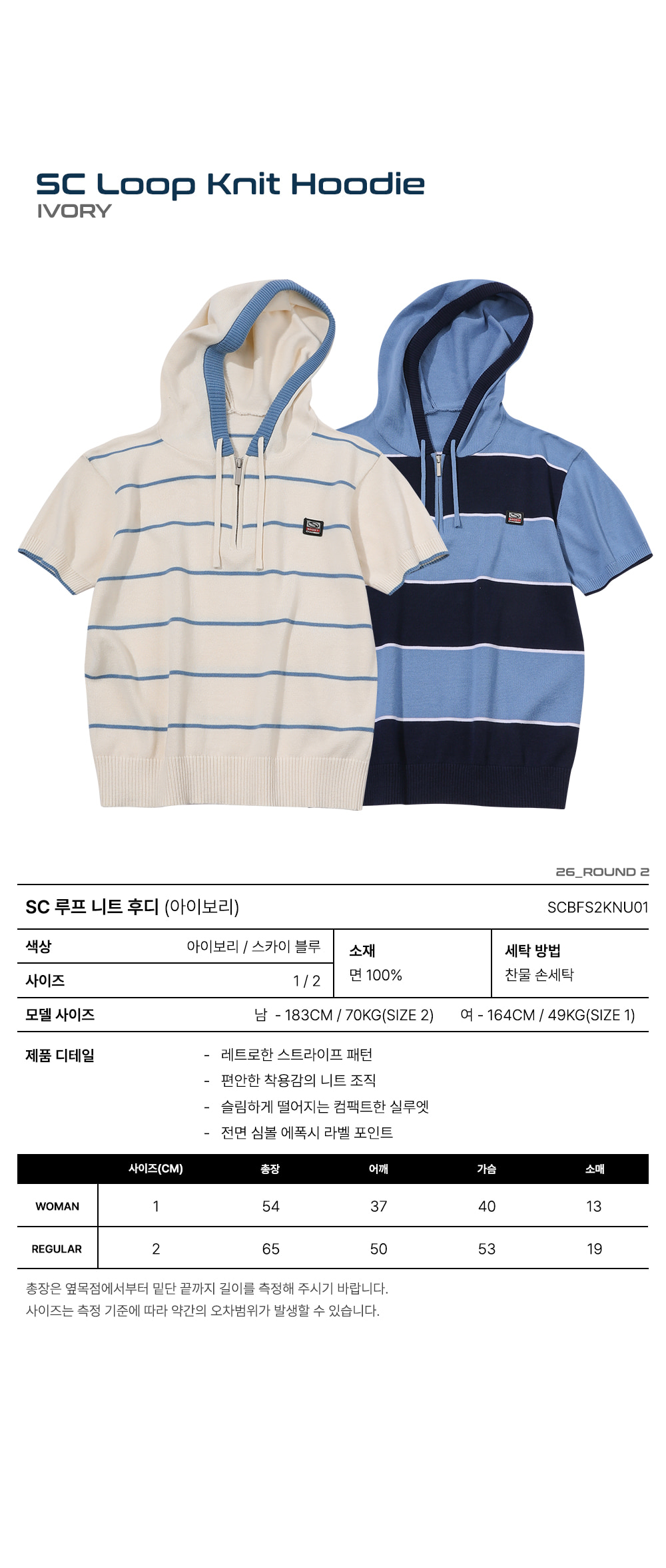 스포츠챔버 루프 니트 후디 아이보리