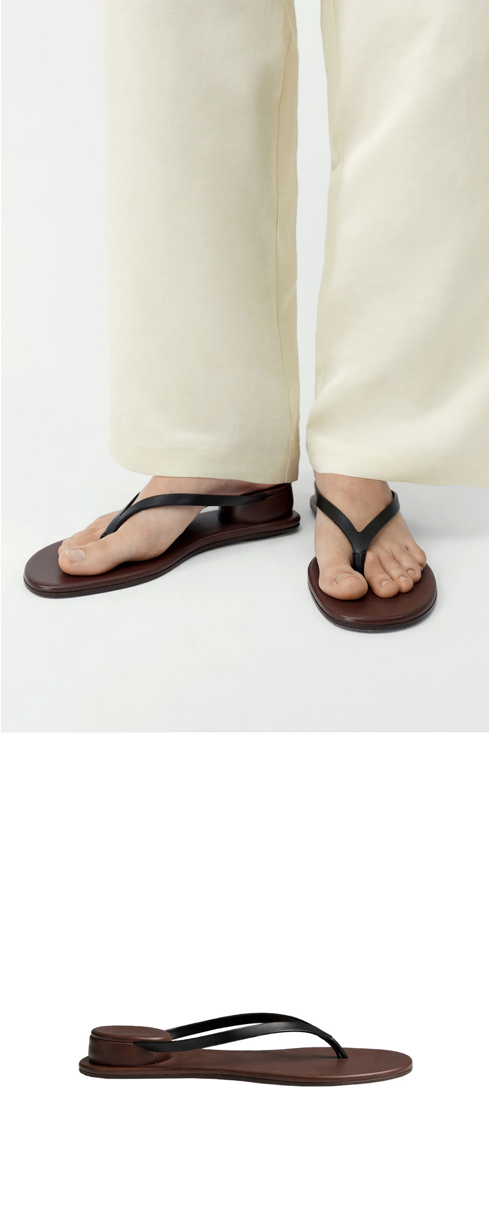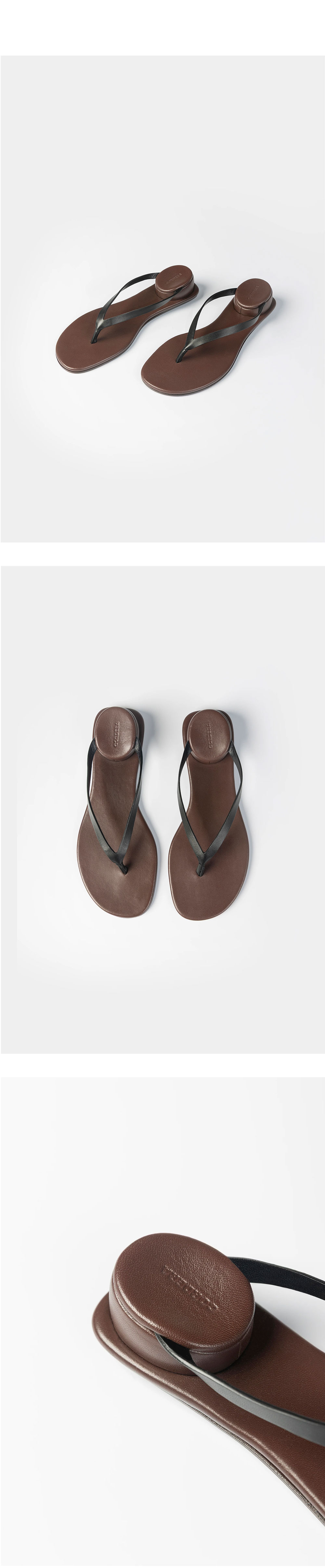 코데라 우먼 에스트루크투라 샌들 블랙 입니다. - 얇은 레더 스트랩이 교차하는 슬림한 플립플랍 실루엣 - 독특한 원형 입체 굽이 적용된 하이 힐 디테일 - 발가락 사이를 고정하는 미니멀한 토 포스트 디자인 - 블랙 스트랩과 대조되는 브라운 톤의 레더 인솔