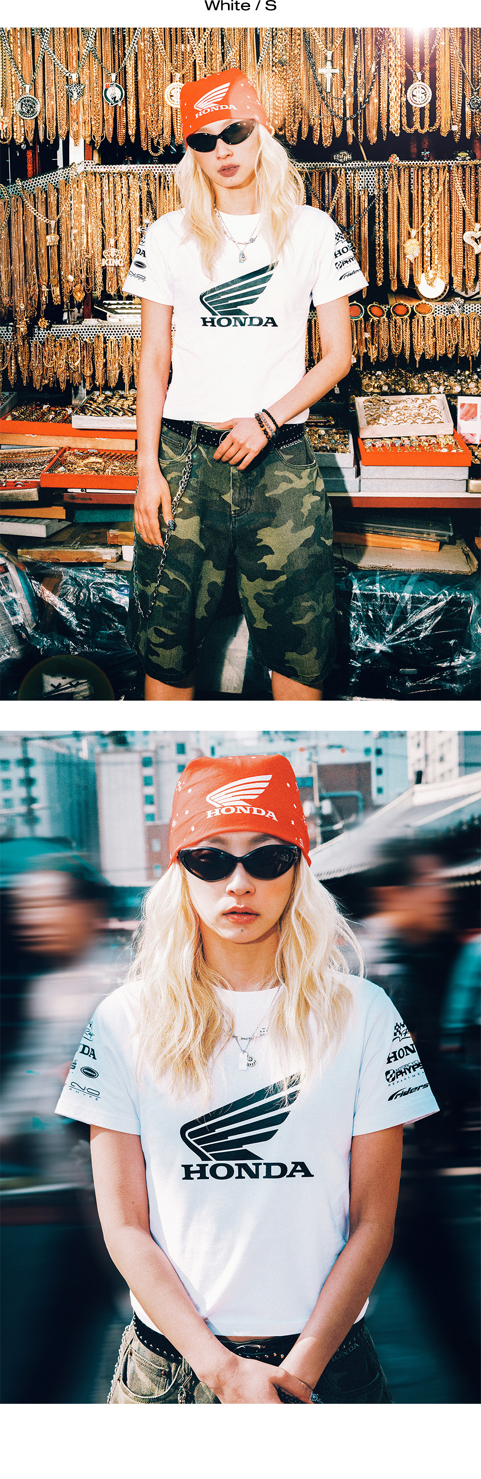 혼다 우먼즈 윙 콜렉터 로고 숏 술리브 화이트