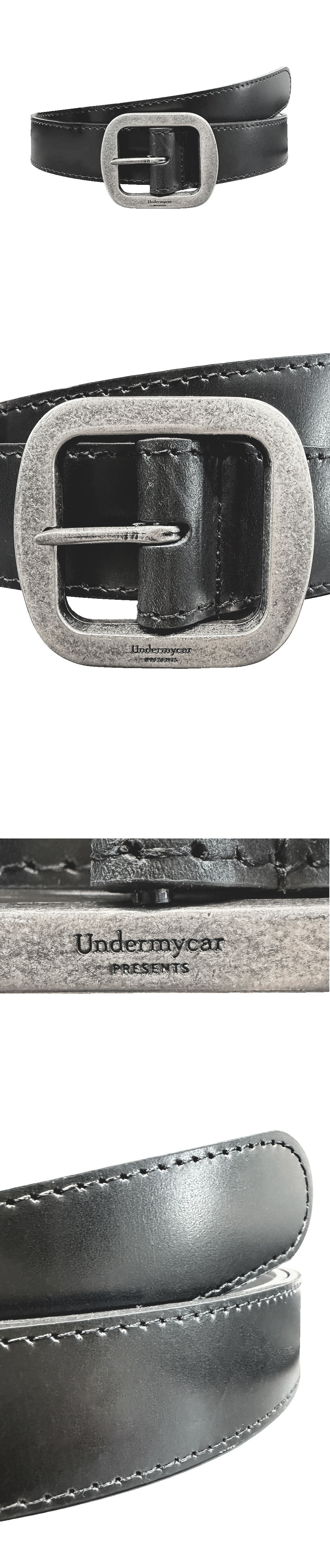 Undermycar MU.128 Original Logo Essential Leather Belt Silver / Black