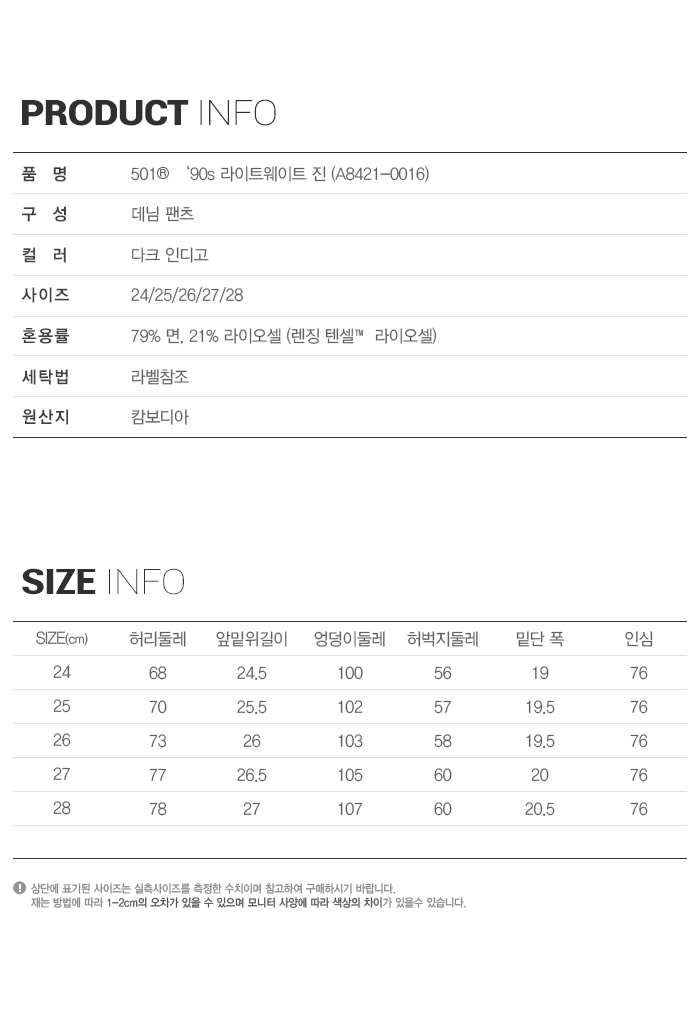 리바이스 501 90s 라이트웨이트 진 다크 인디고