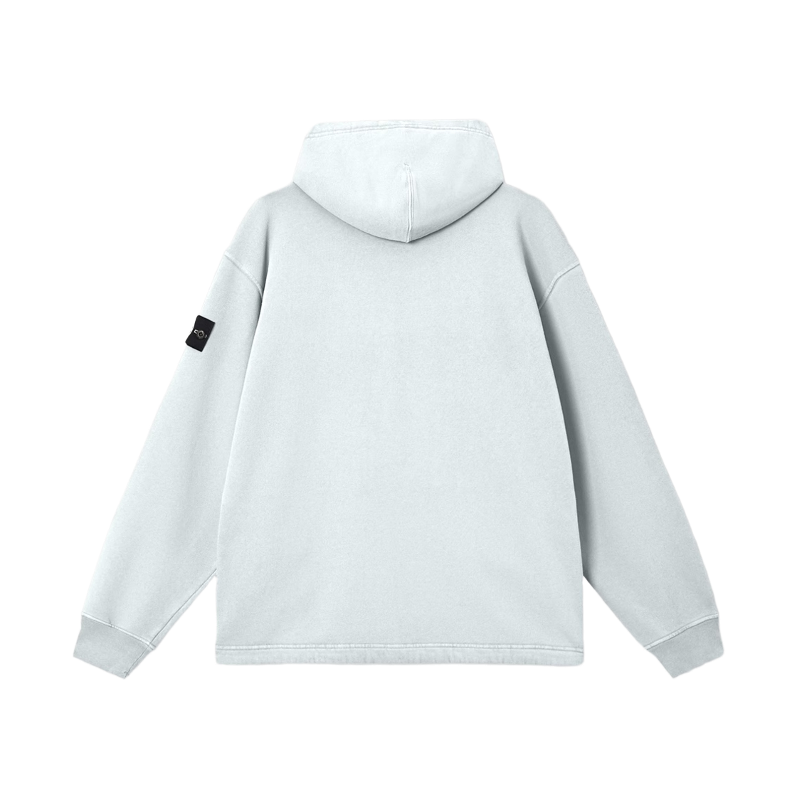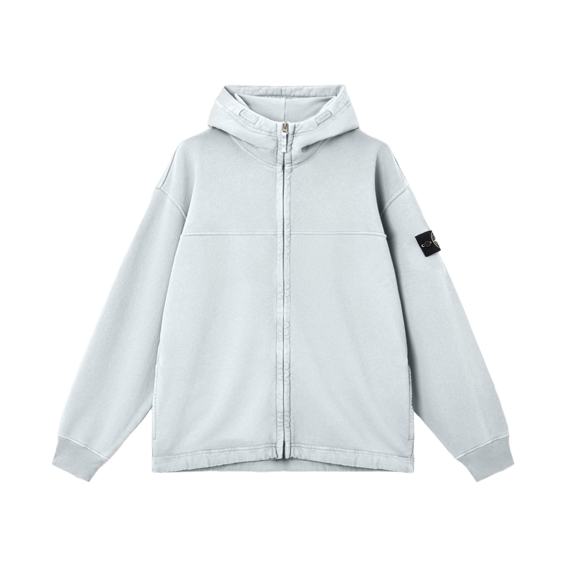 Stone Island 6100017 Organic Cotton Fleece Reflective Garment Lamination Oversized Fit Zip-Up Hooded Sweatshirt with Pockets Sky Blue - 26SS
