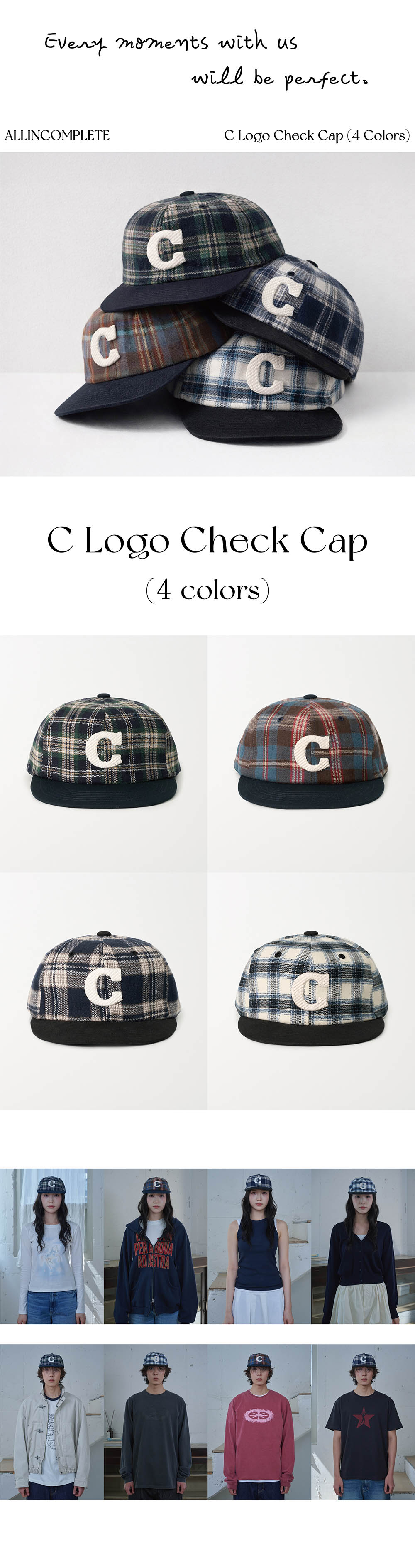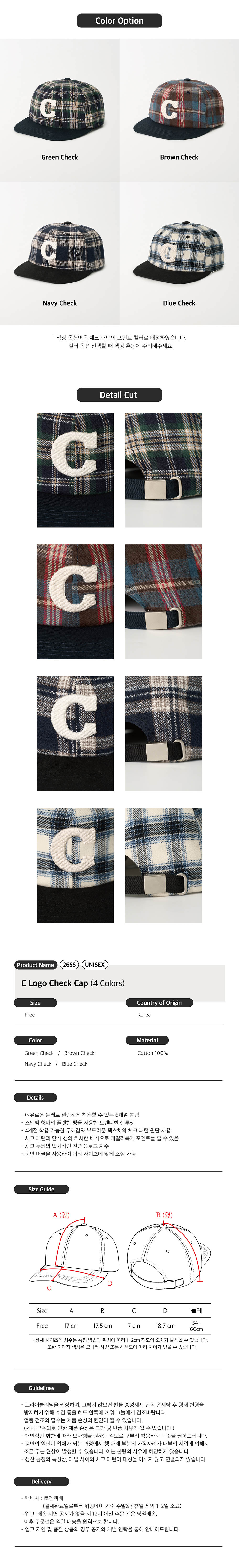 올인컴플리트 C 로고 체크 캡 브라운 체크