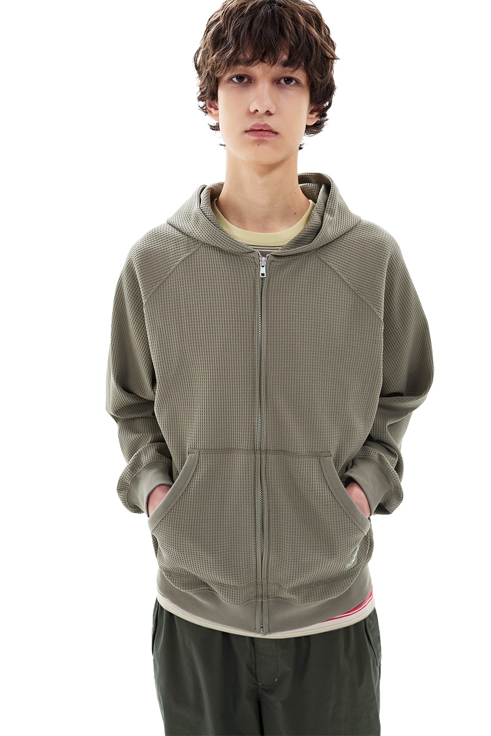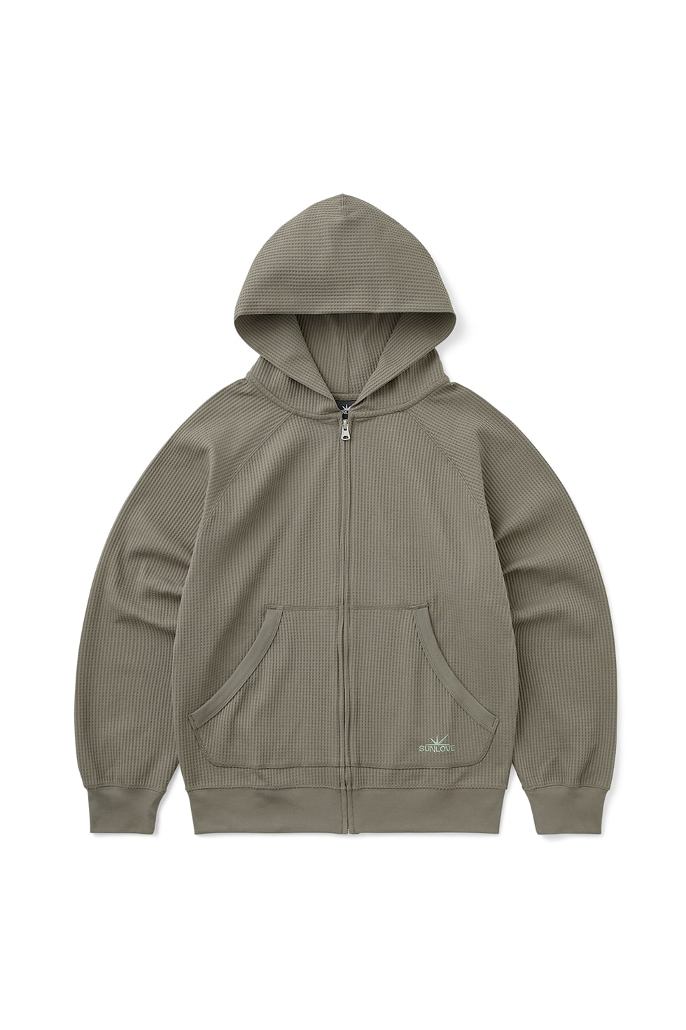[트리플적립] SUNLOVE Aero Waffle Zip Up Hoodie Taupe
