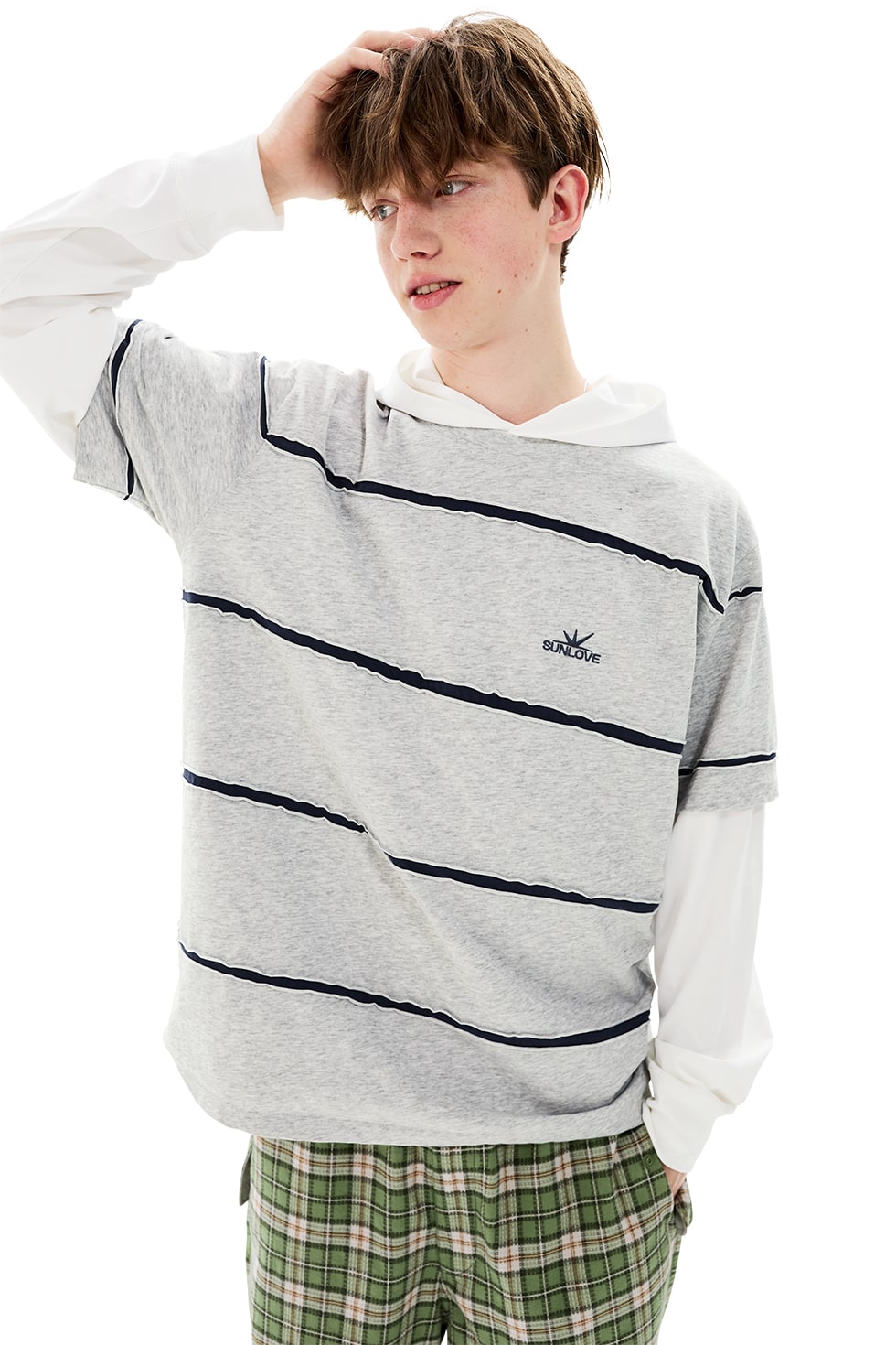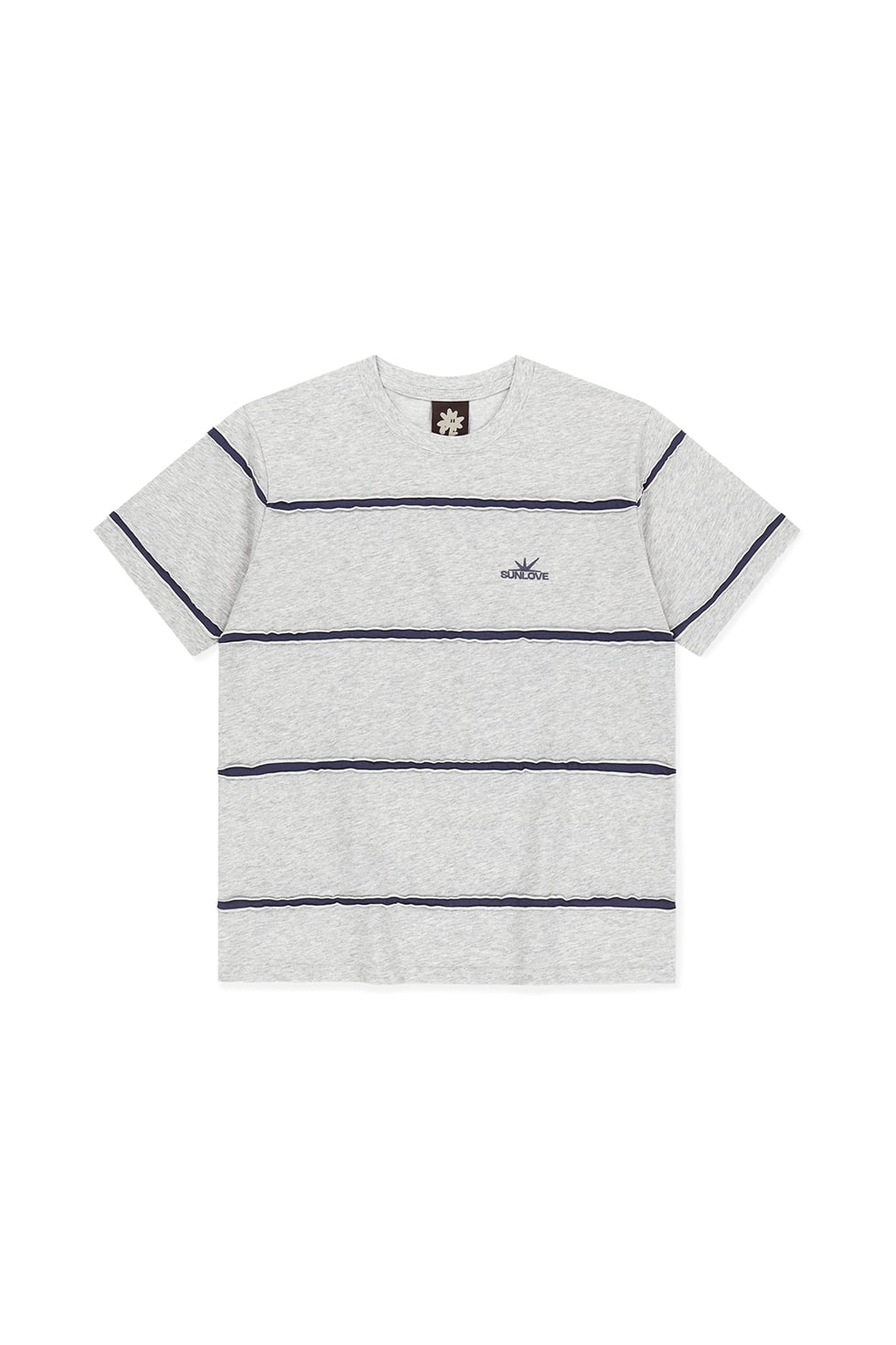 [트리플적립] SUNLOVE Raw Edge Stripe Tee Heather Grey