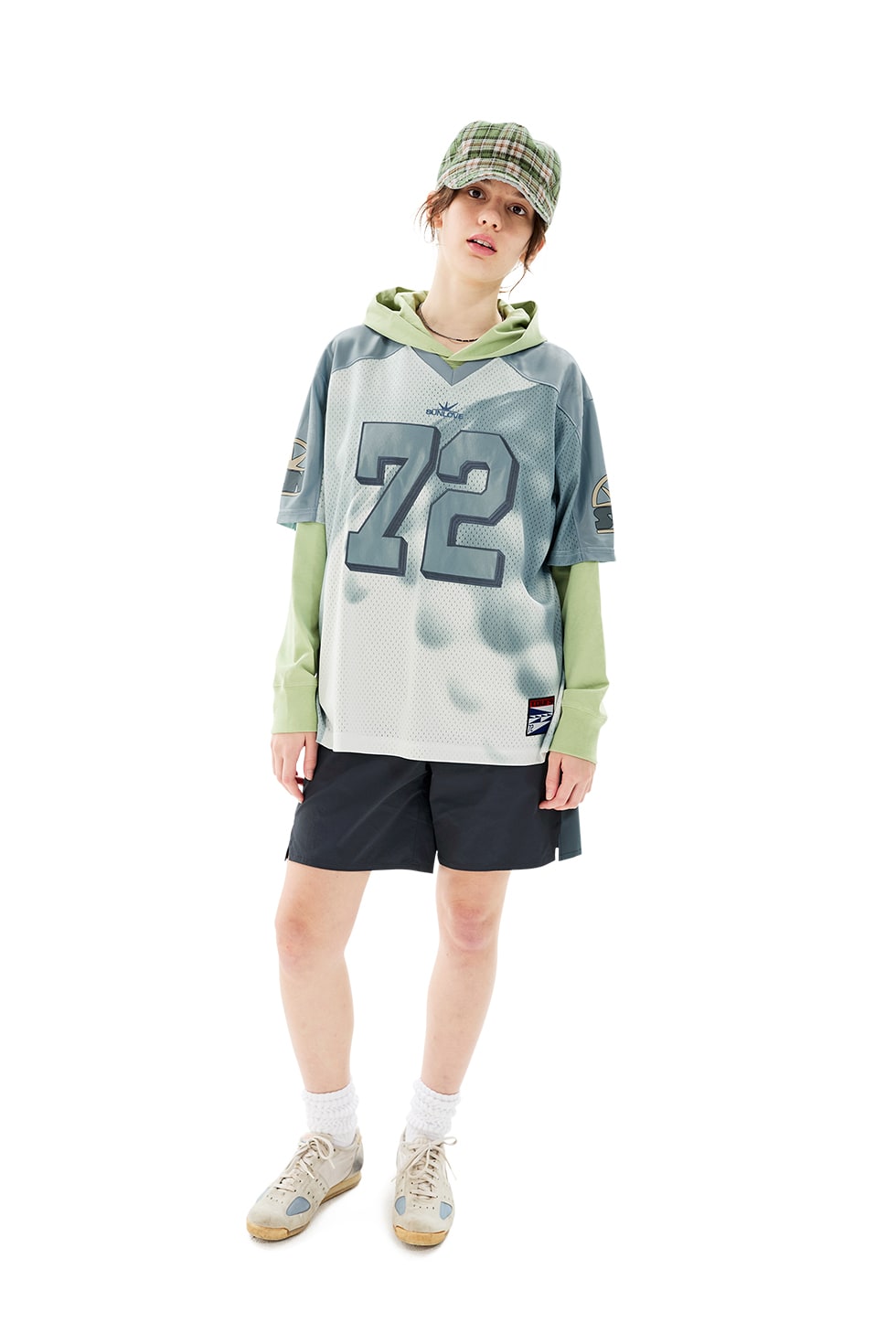 · 메쉬 반팔 티셔츠 · 기능성 폴리에스터 메쉬 원단 사용 · 냉감, 통기성, 흡한속건 우수 · 넥 밴딩 처리 · 그래픽 라벨 · 시즌 그래픽 프린트 Polyester 100% Made in China