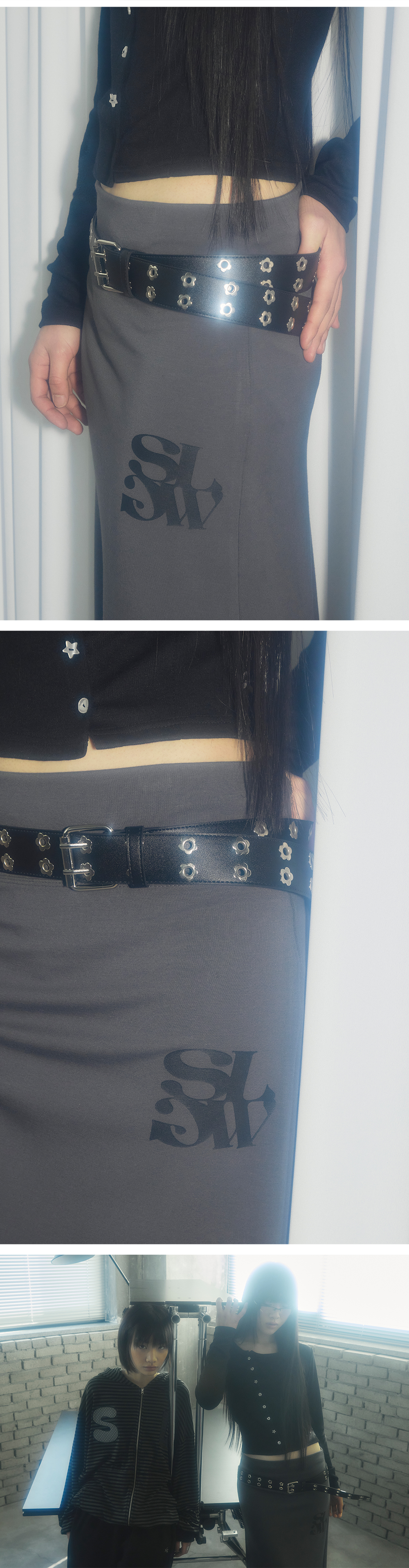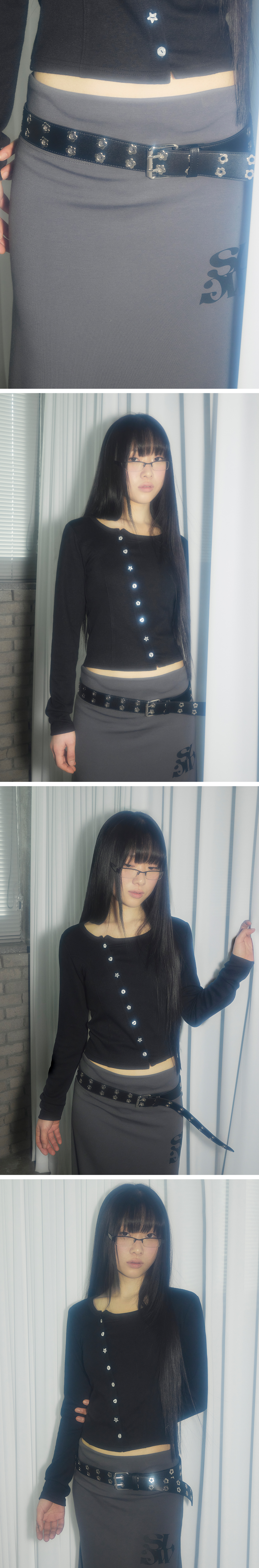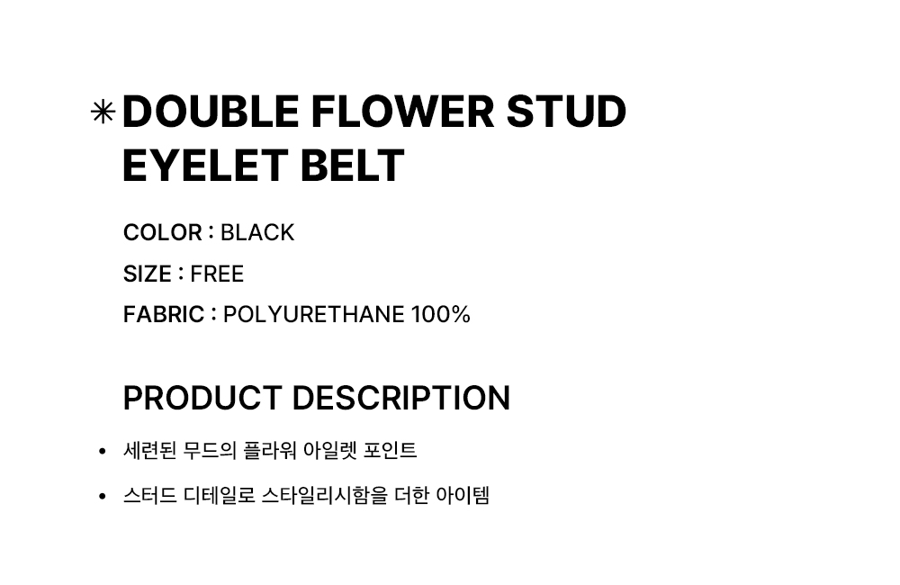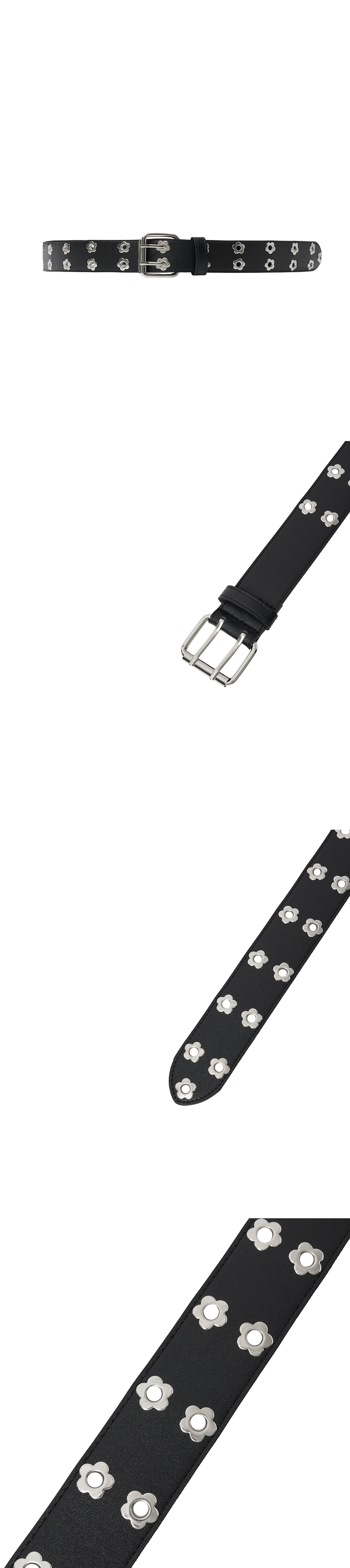 슬릭글로우 더블 플라워 스터드 아일렛 벨트 블랙