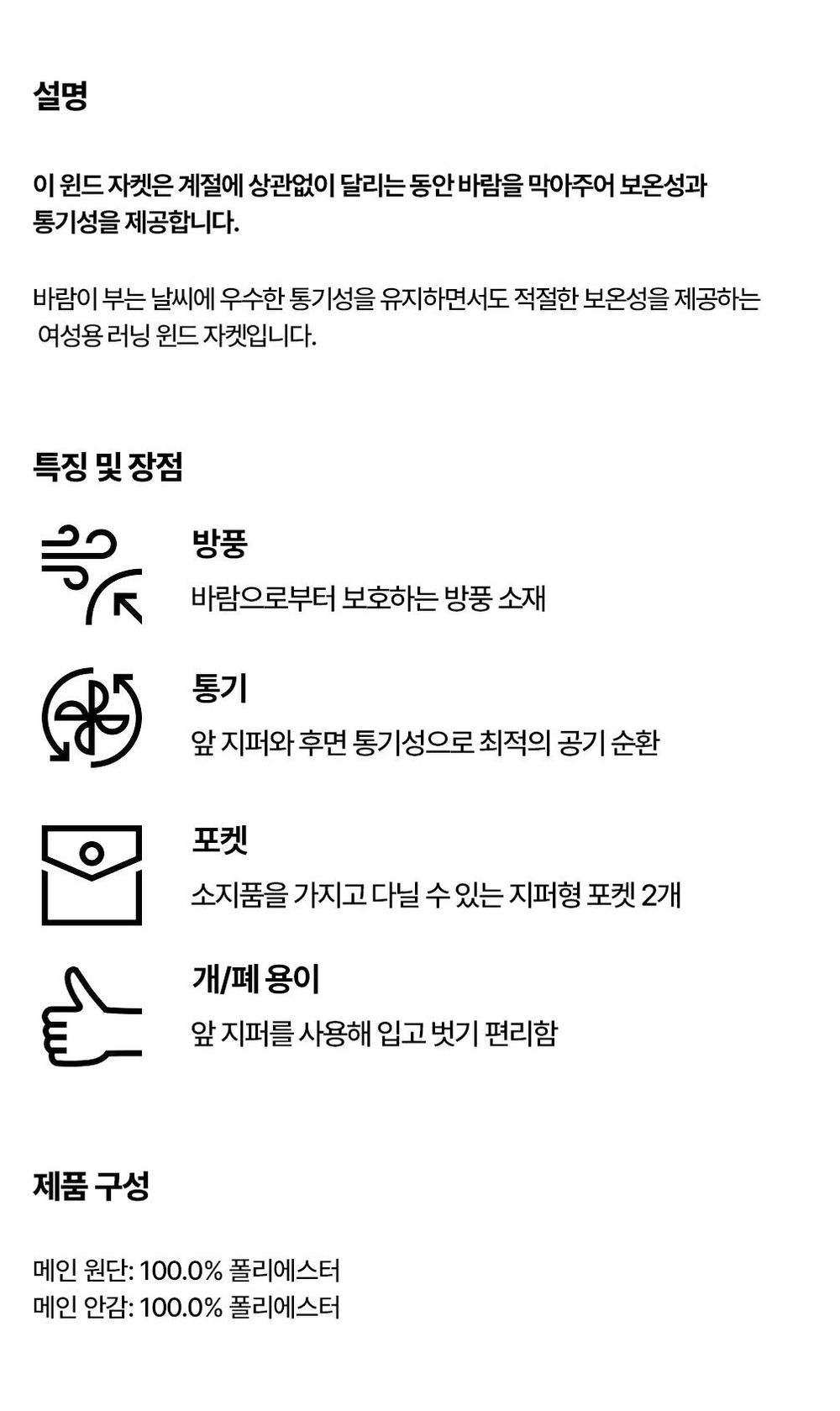 데카트론 여성 러닝 윈드 재킷 런 100 울트라 화이트