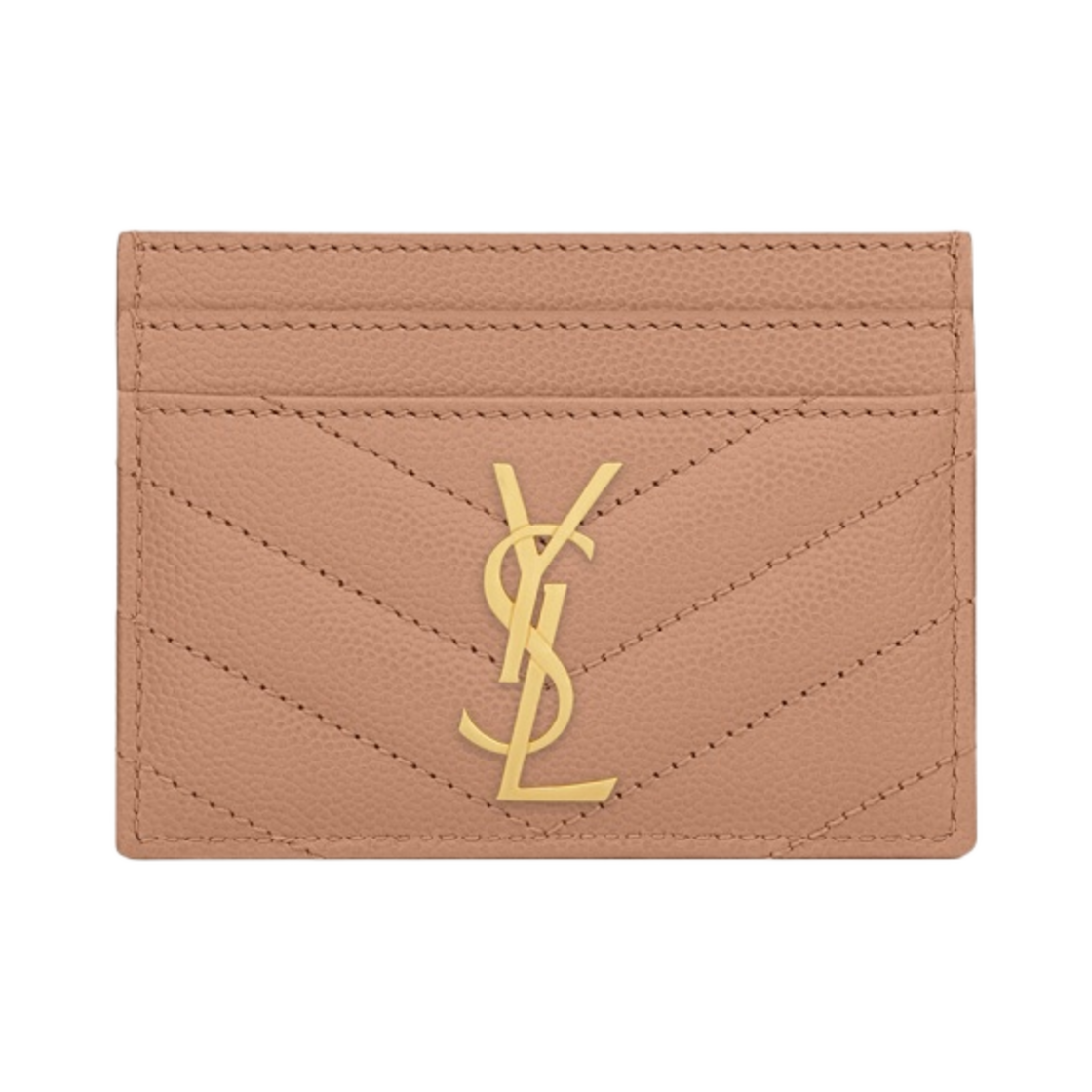 Saint Laurent Cassandre Matelasse Card Case in Grain de Poudre Embossed Leather Vintage Peach