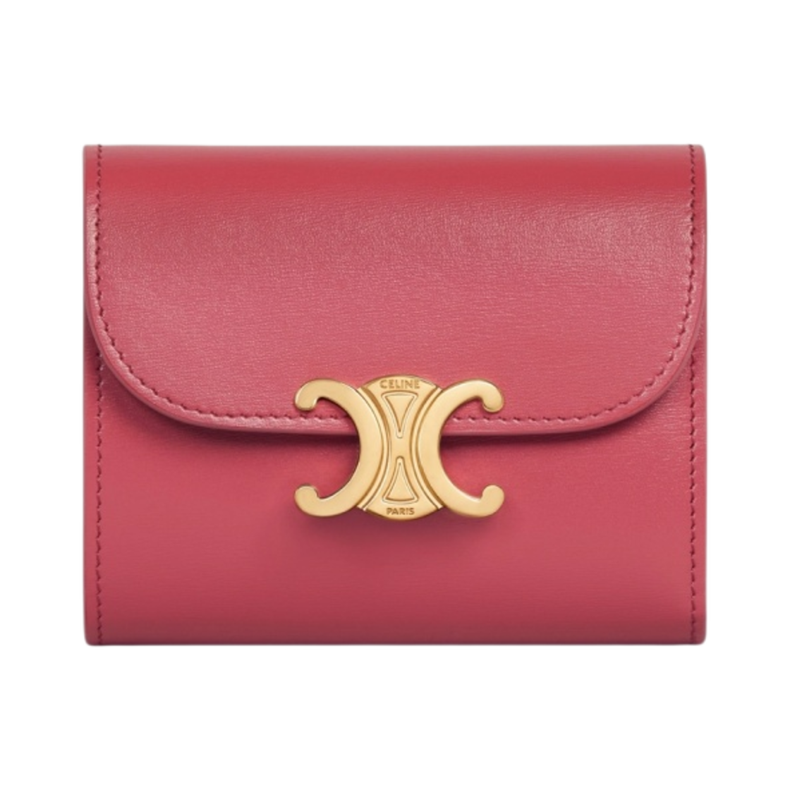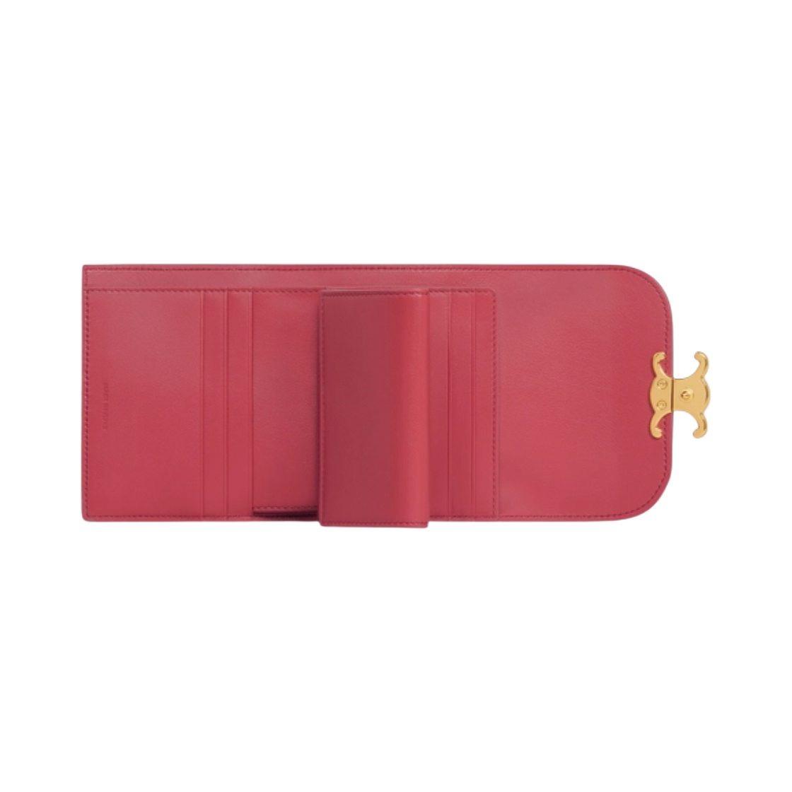 Celine Triomphe Small Flap Wallet in Shiny Calfskin Lipstick