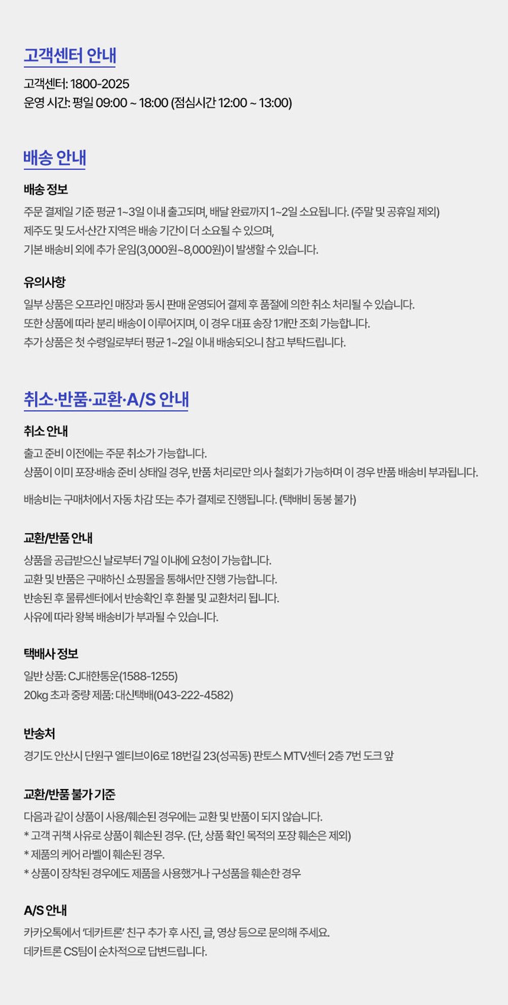 교환 및 반품 안내